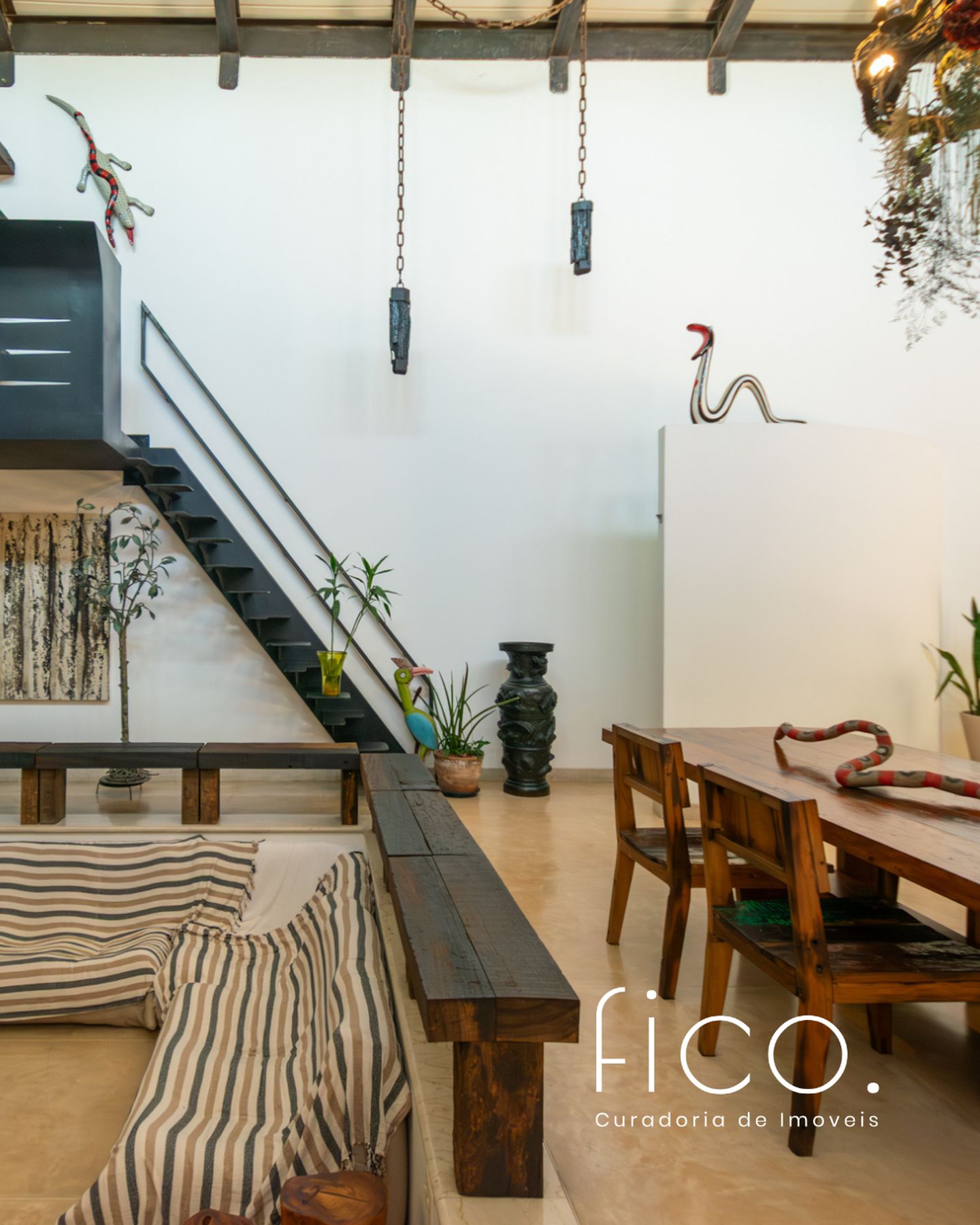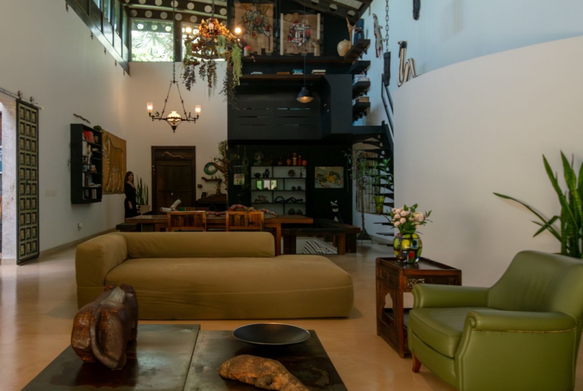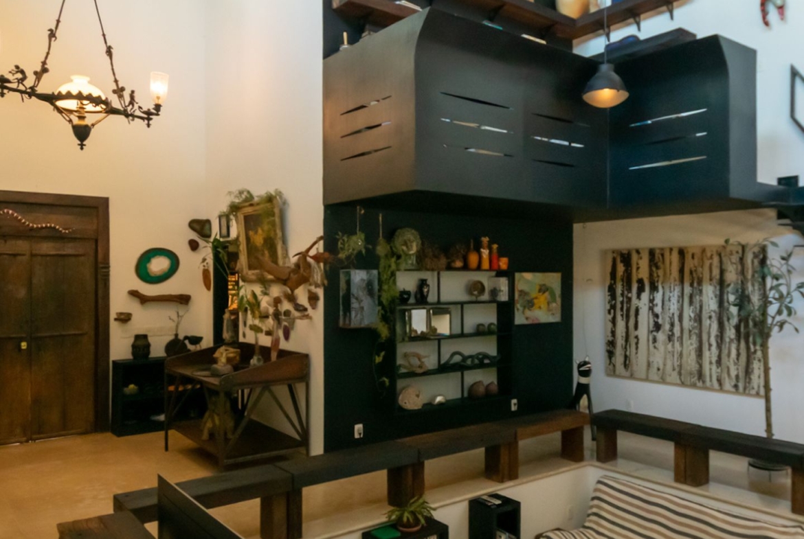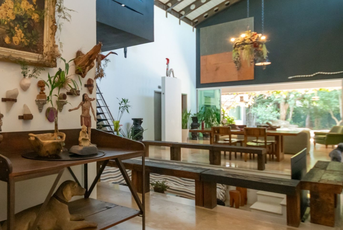 Uma casa cheia de significados, que nasceu de peças garimpadas pelo olhar criterioso, afiado e apaixonado da proprietária, uma talentosa, criativa e interessante artista plástica.
