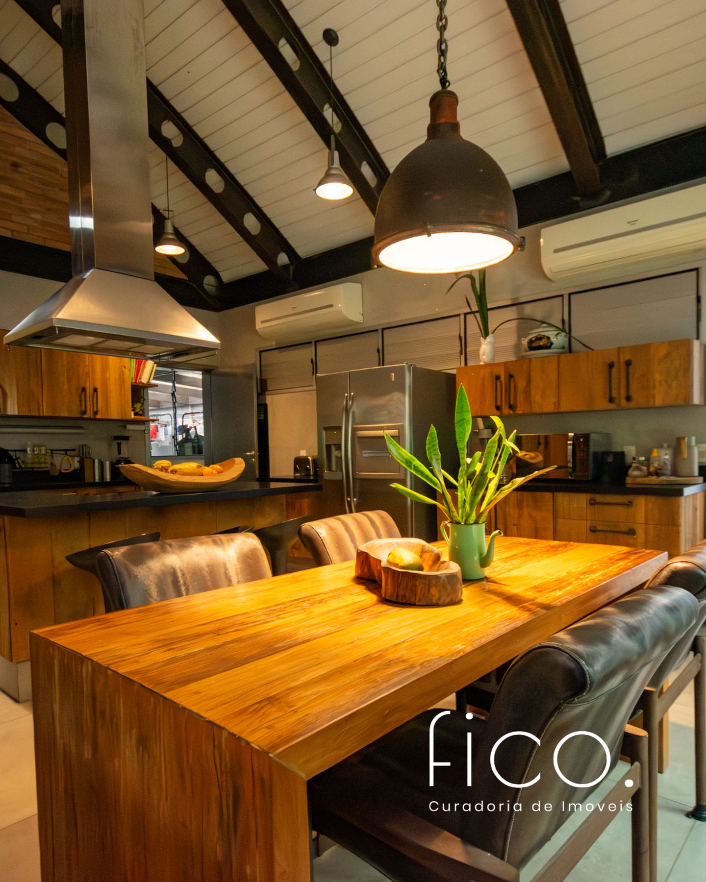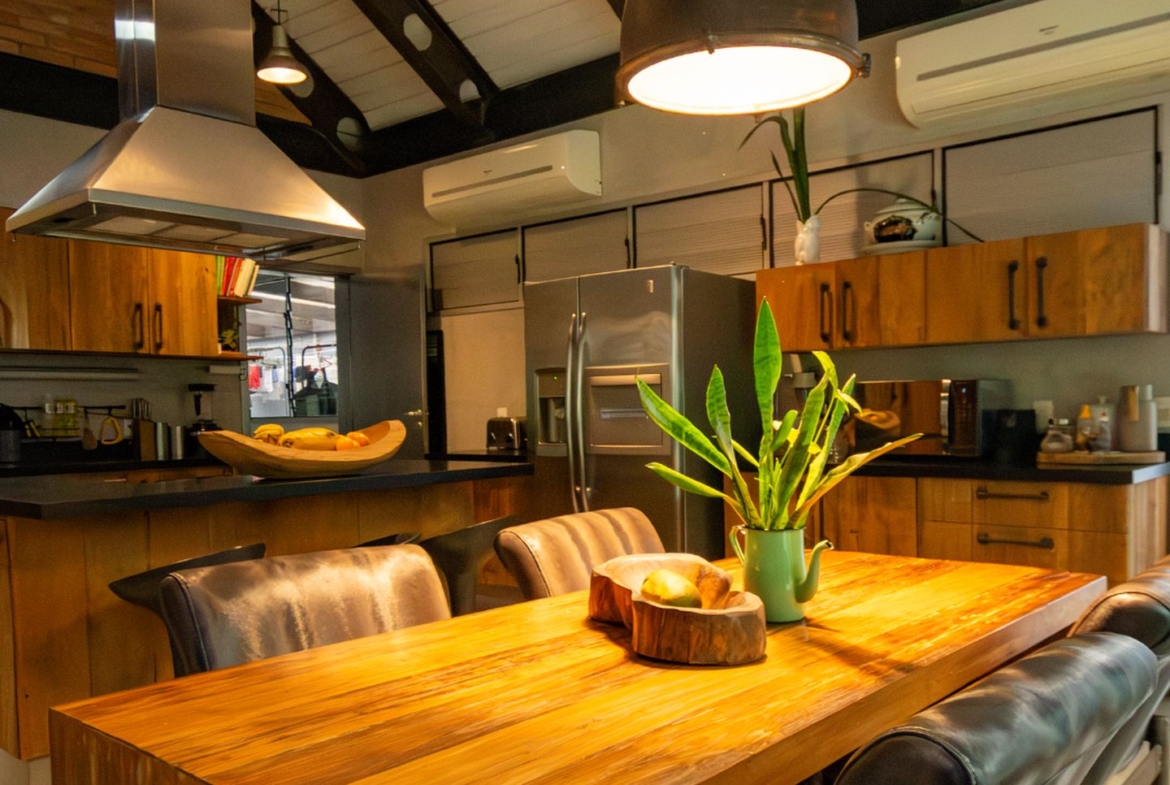 A cozinha, além de incrível, é muito funcional e repleta de armários. Tem ilha com cooktop, coifa e uma mesa, que comporta confortavelmente seis pessoas. Perfeita para cozinhar para a família e amigos!