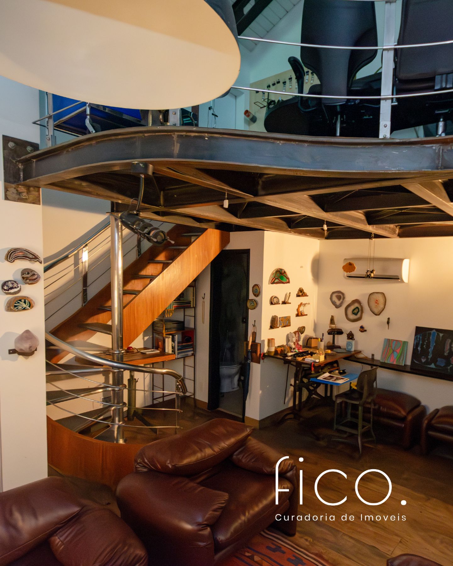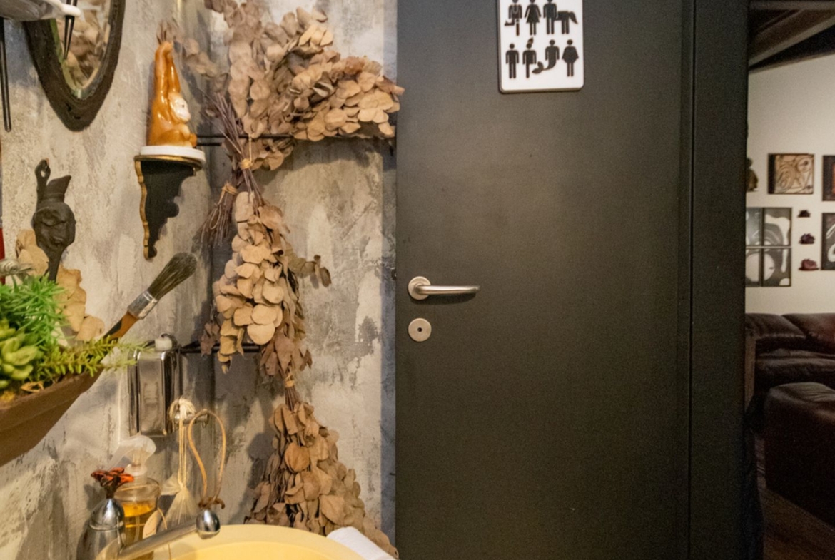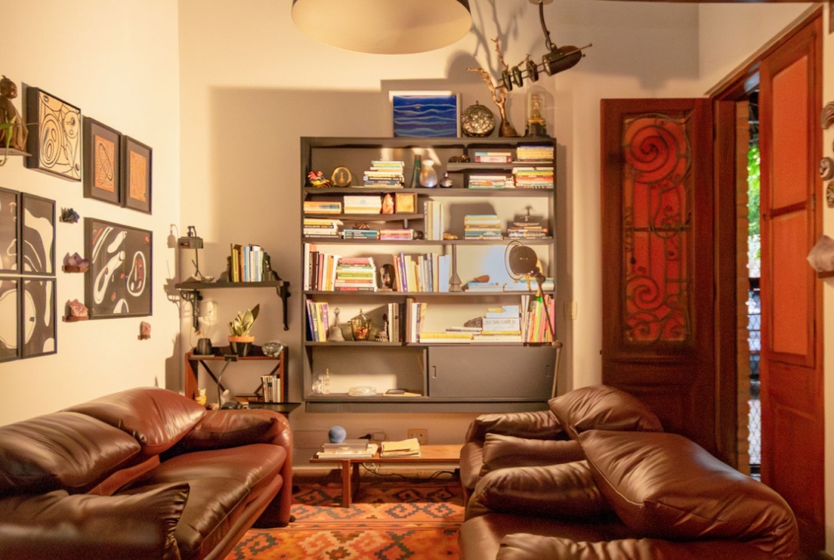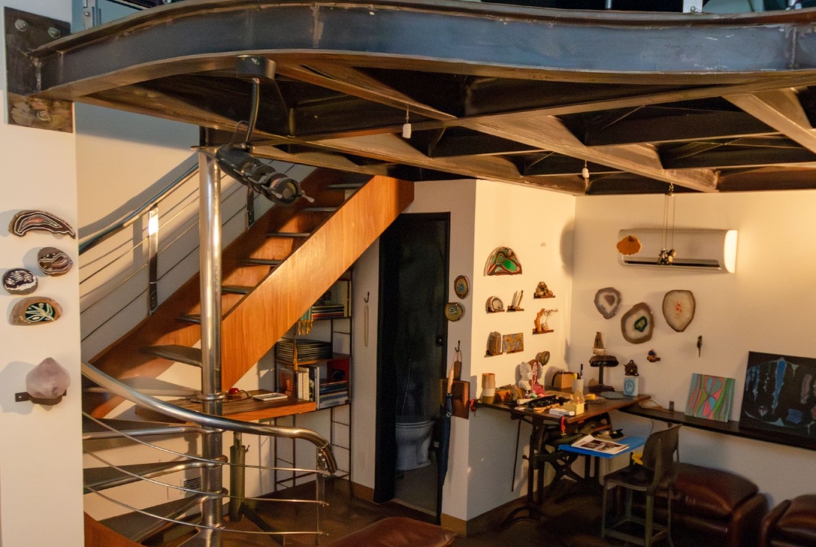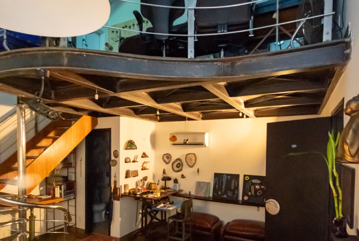 O ateliê, que tocou os nossos corações, possui acesso pelo hall de entrada e ainda um outro independente, perfeito para quem atende clientes e precisa de privacidade. Além de tudo, tem um charmoso lavabo, mezanino e depósito.