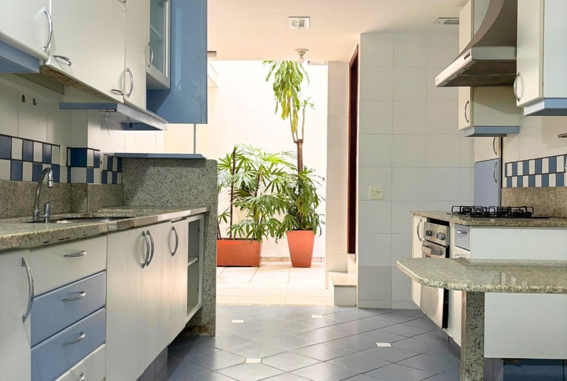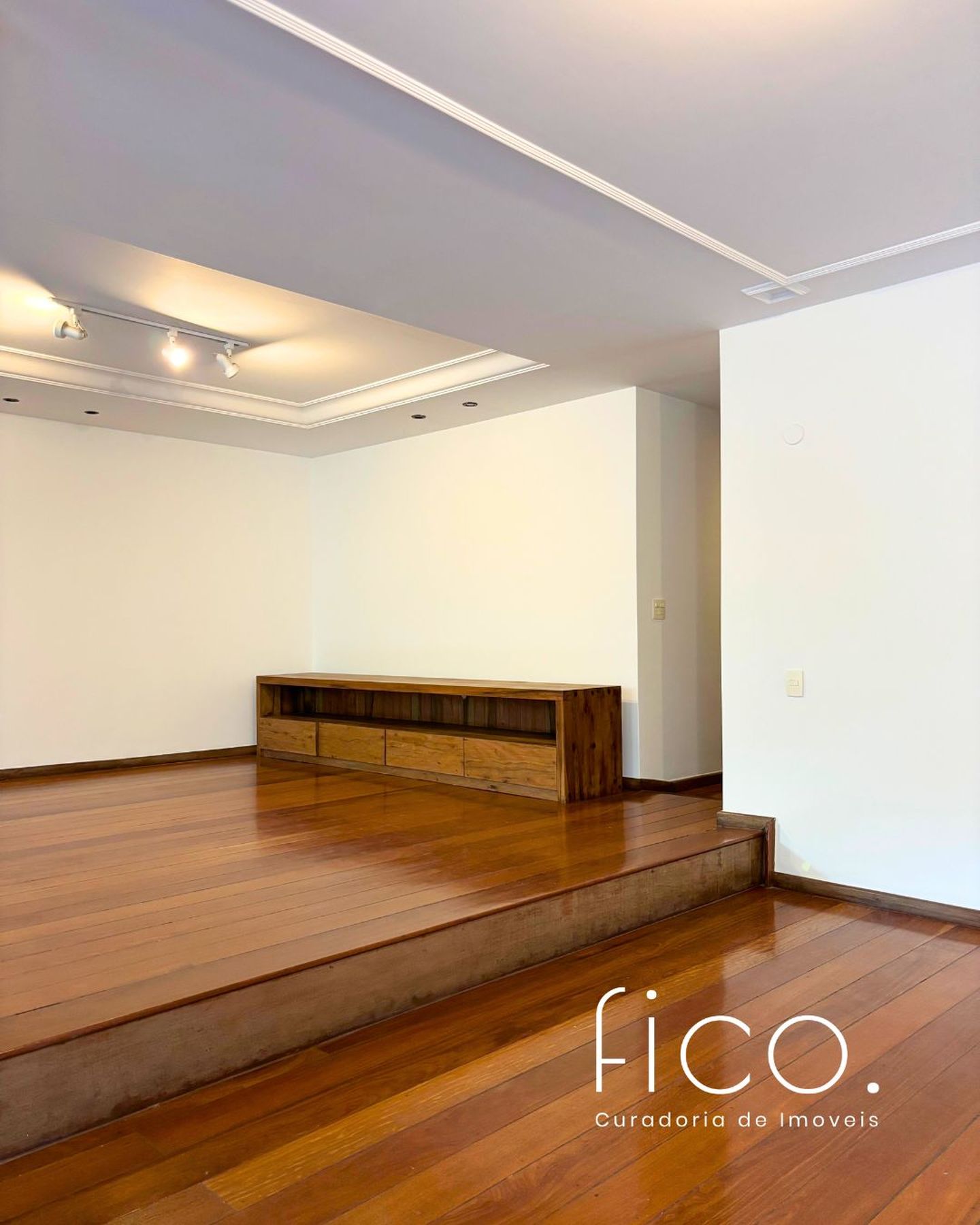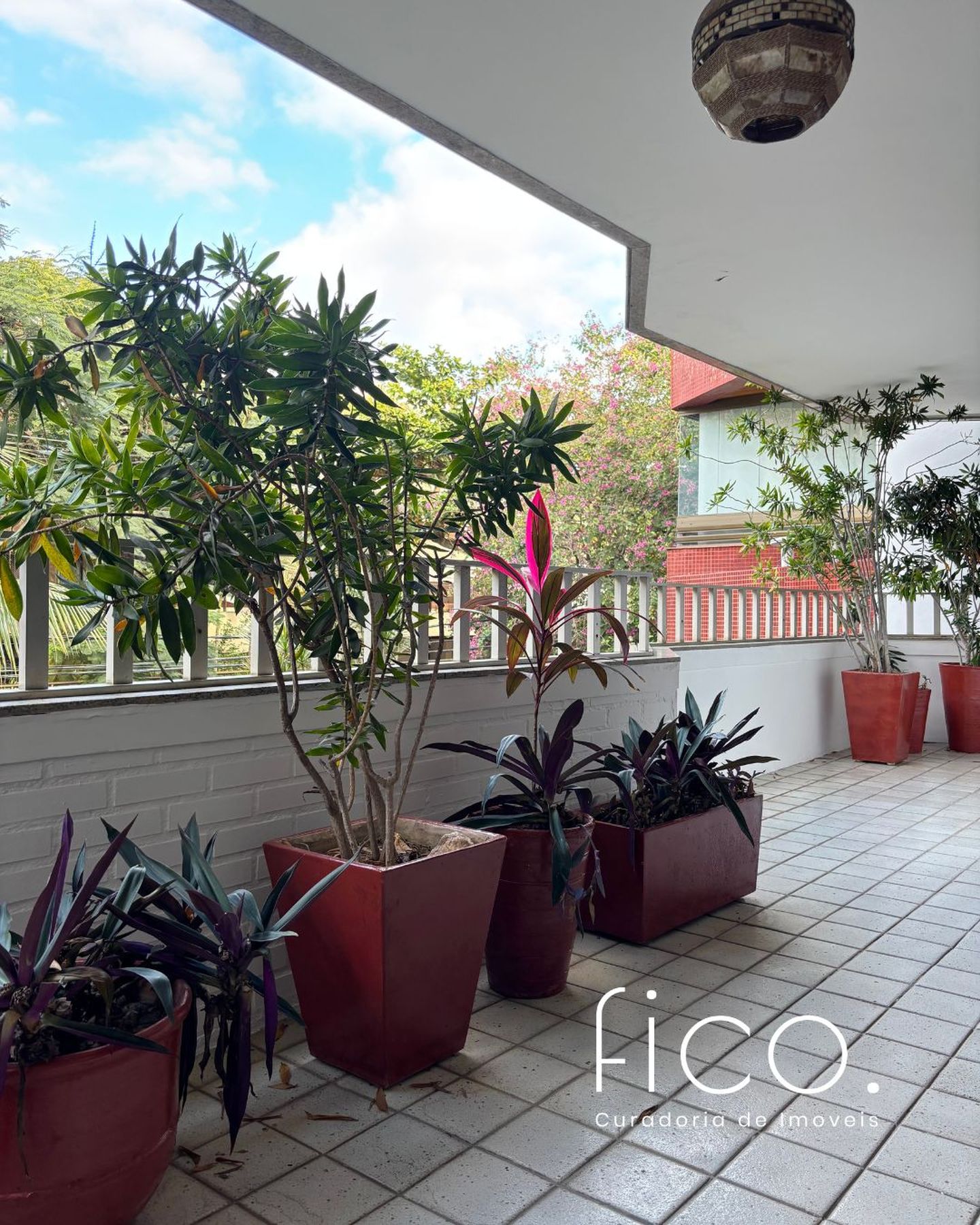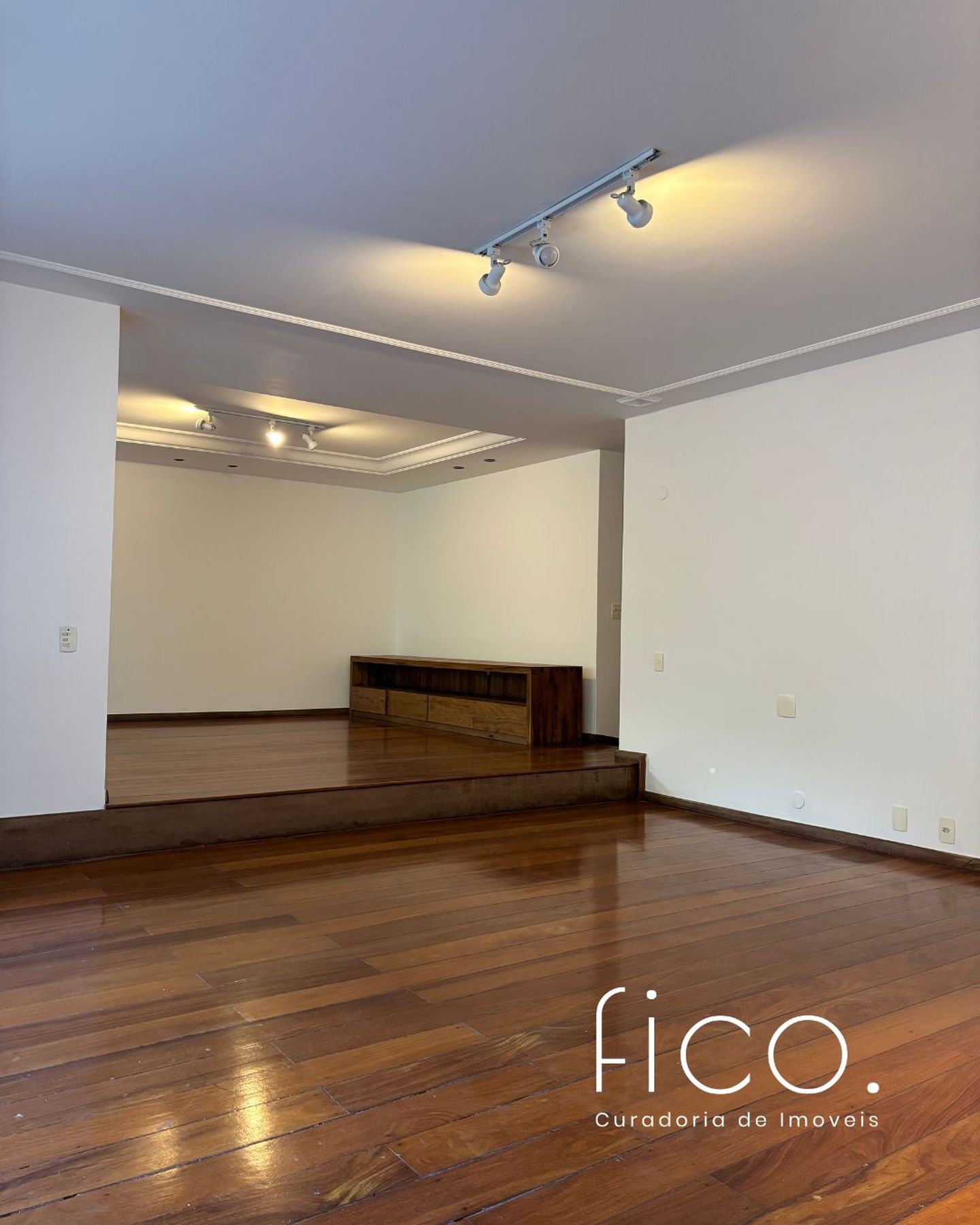 A ampla sala em três ambientes, e com um lindo piso em tábuas corridas, possui uma agradável varanda em toda a sua extensão, por onde entra o verde e muita luz.