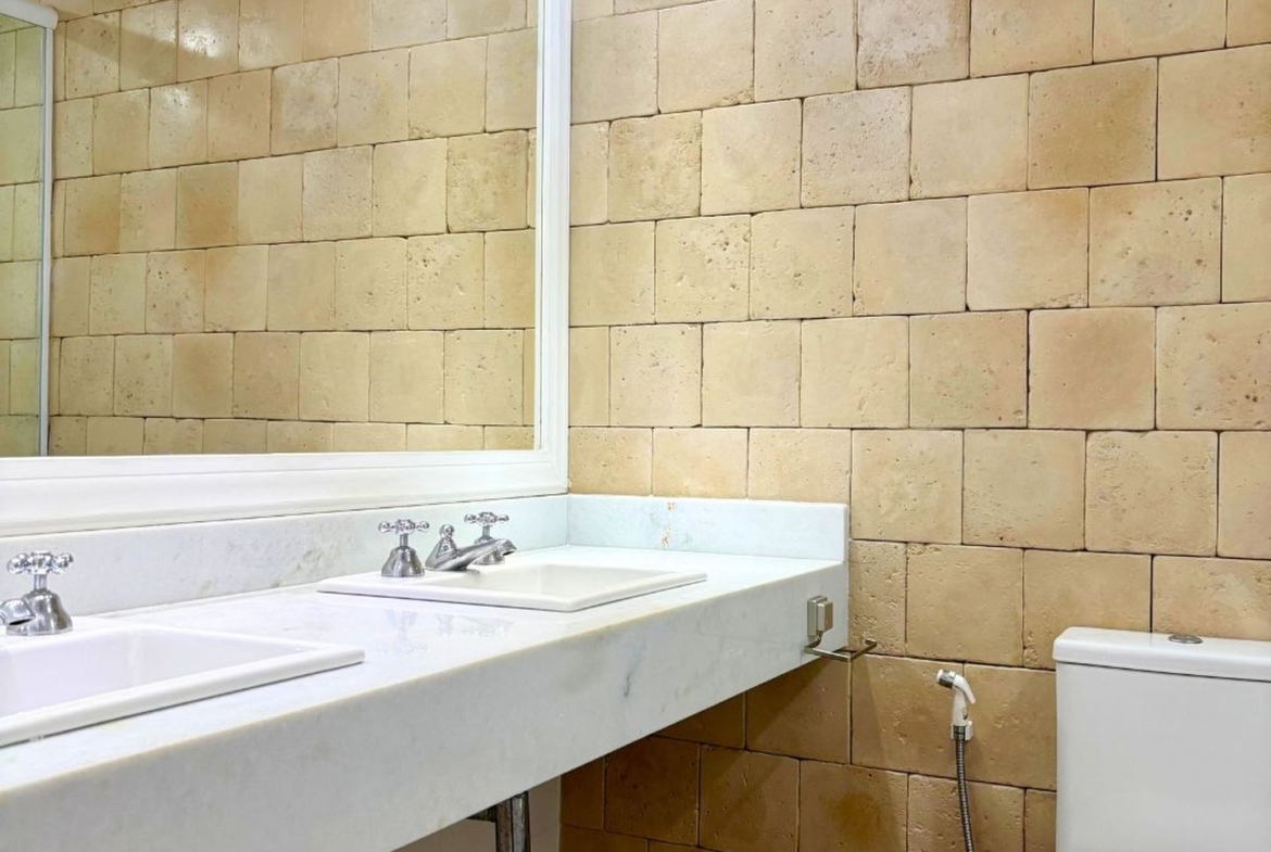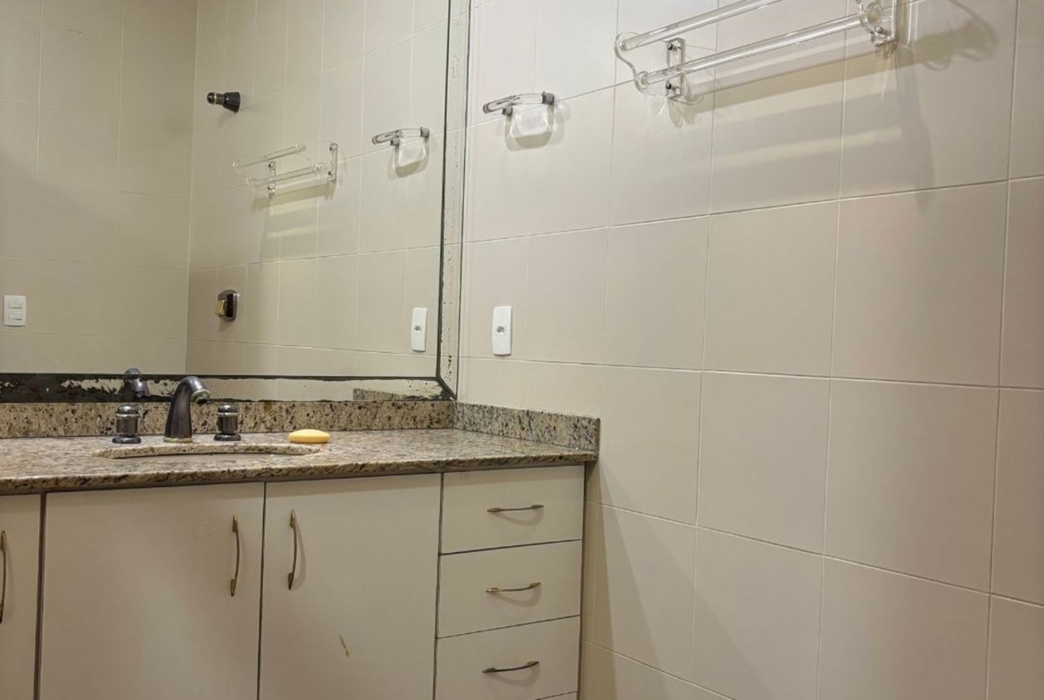 Os banheiros são espaçosos e o da suíte com hidromassagem.