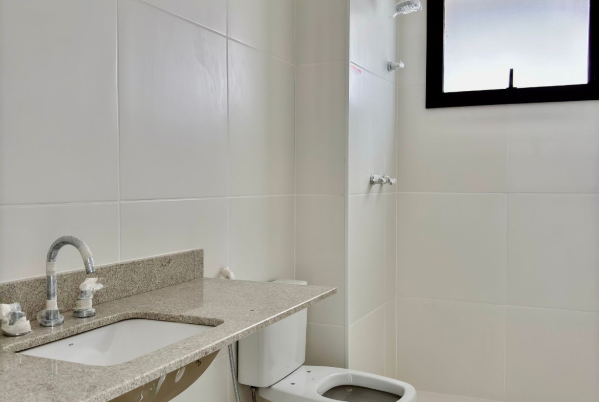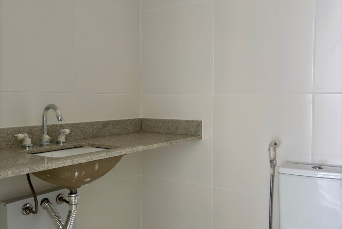 Entregue com louças, metais, bancadas e todo preparado para receber ar condicionado tipo split na sala e quartos.