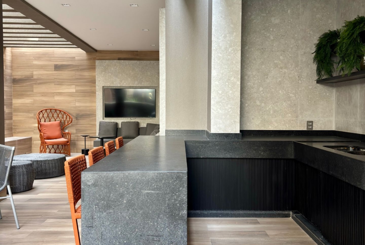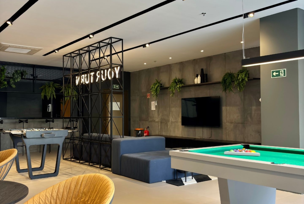 O condominio tem infraestrutura completa, com portaria 24h, piscina, sauna, coworking, brinquedoteca, playground, salão de jogos, churrasqueira, salão de festas, spa e academia super bem equipada.