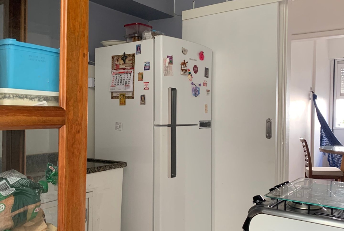 O piso em taco de madeira traz aconchego e personalidade aos ambientes. A cozinha, atualmente independente, pode ser integrada à sala, criando uma área social ampla e moderna. Conta ainda com dependência completa, oferecendo versatilidade de uso.