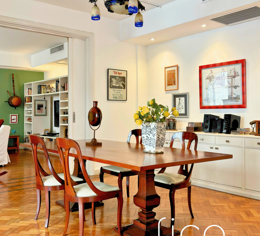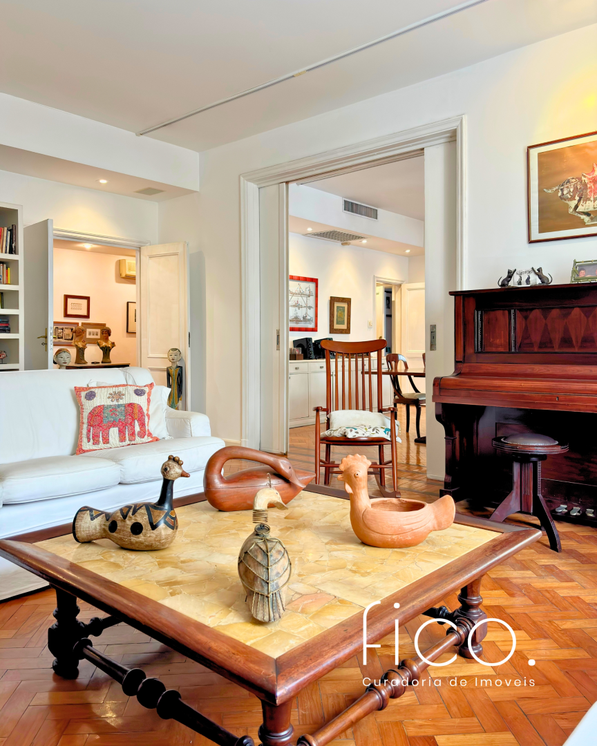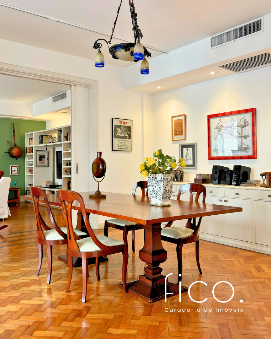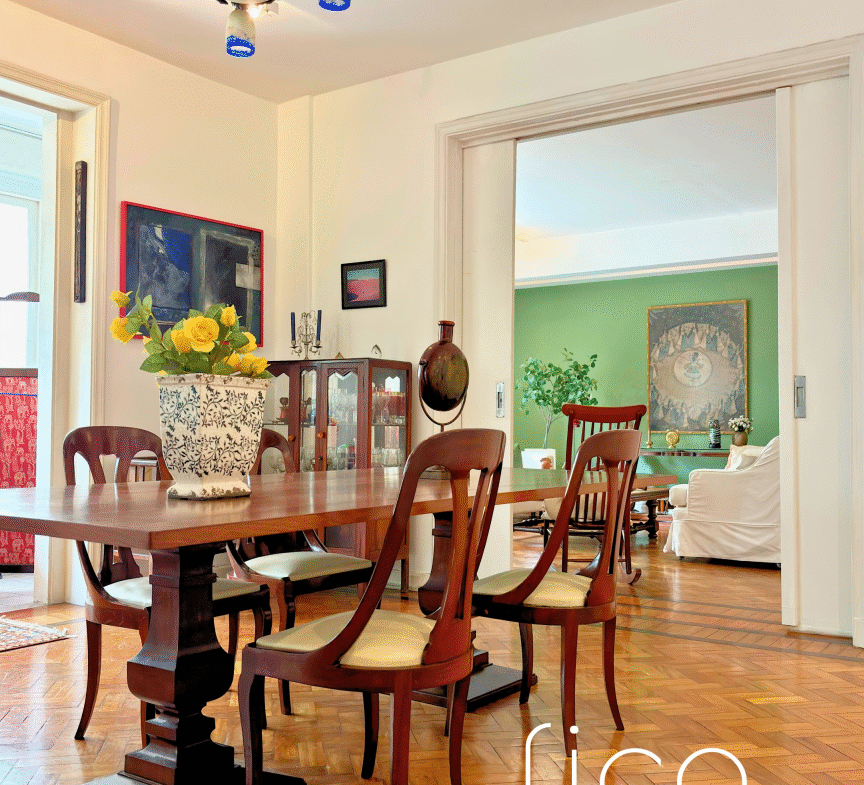 Em um dos endereços mais tradicionais do Flamengo, entre as copas das árvores, este apartamento de 253m² se localiza em um prédio clássico dos anos 40, com tudo o que as construções antigas têm de melhor: pé-direito alto, espaços generosos, piso em taco, construção sólida e um charme atemporal.