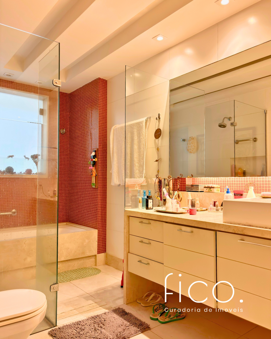 São quatro quartos, sendo duas suítes, além de duas salas amplas, lavabo, varanda integrada, copa cozinha, área de serviço e dependência completa, em uma planta circular.