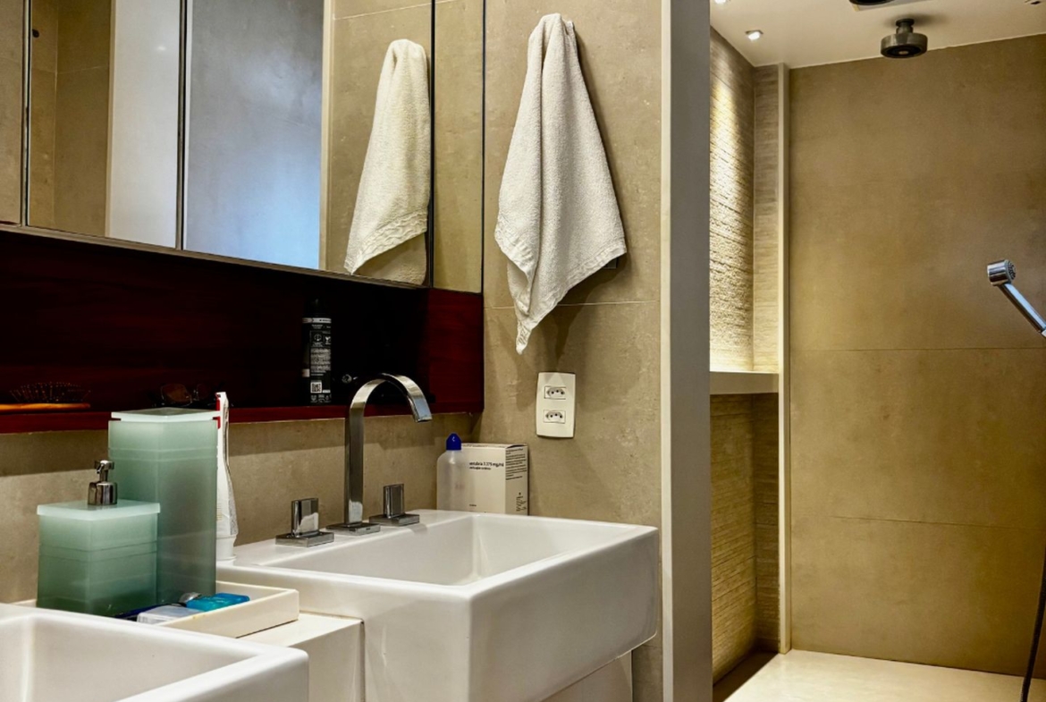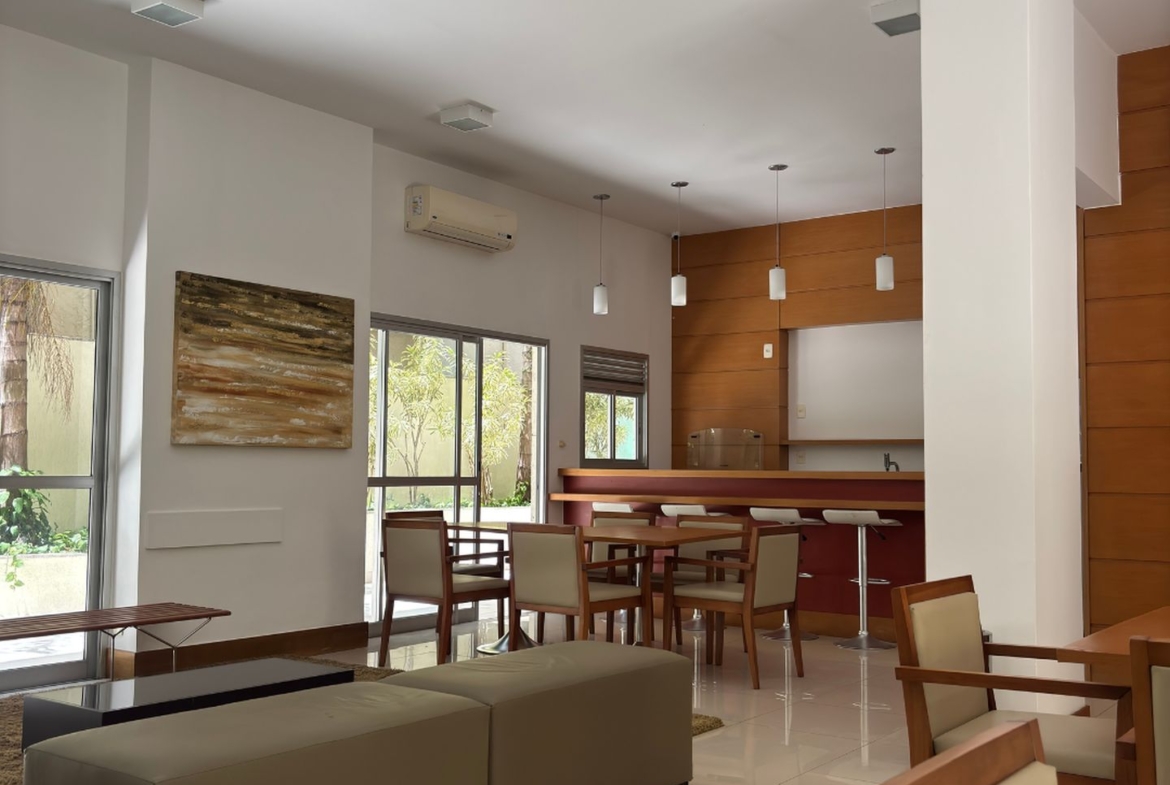 Conta ainda com duas vagas de garagem cobertas e escrituradas e box privativo, além de portaria 24h digital e monitoramento de segurança.