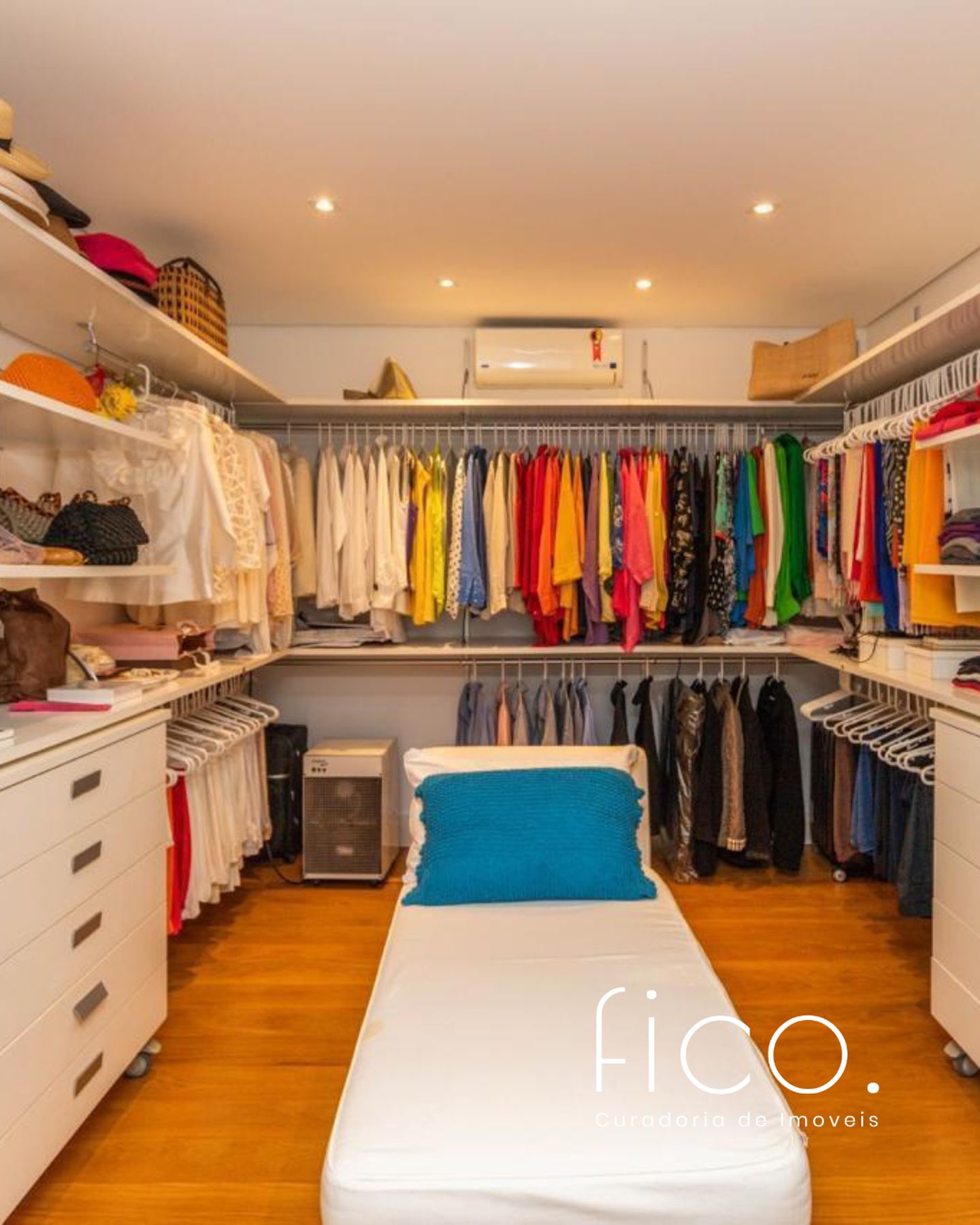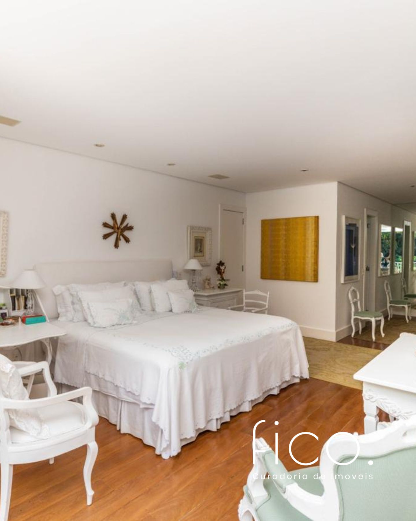 No pavimento superior, com piso todo em lindas réguas de Peroba, encontram-se cinco suítes com marcenaria impecável e de muito bom gosto, sendo duas com closet. A suíte principal é composta por uma deliciosa sala íntima, dois closets e uma generosa sala de banho.