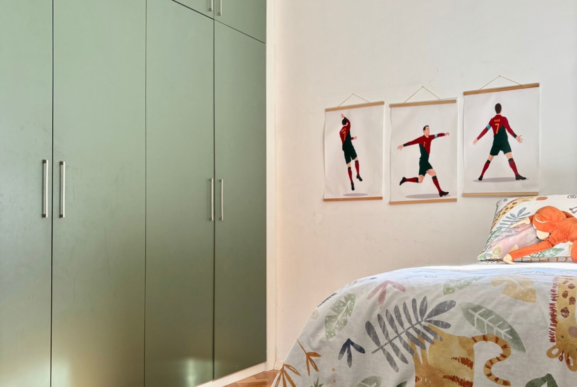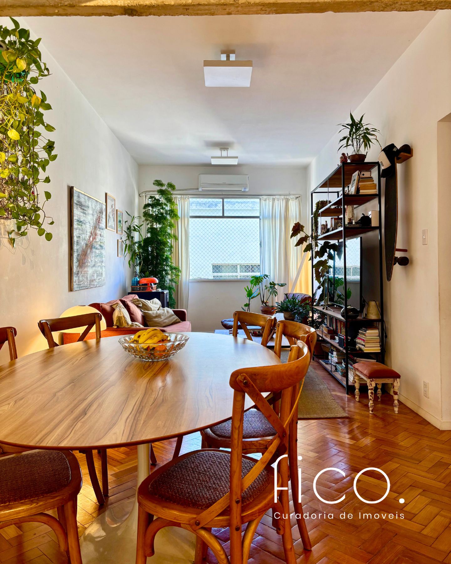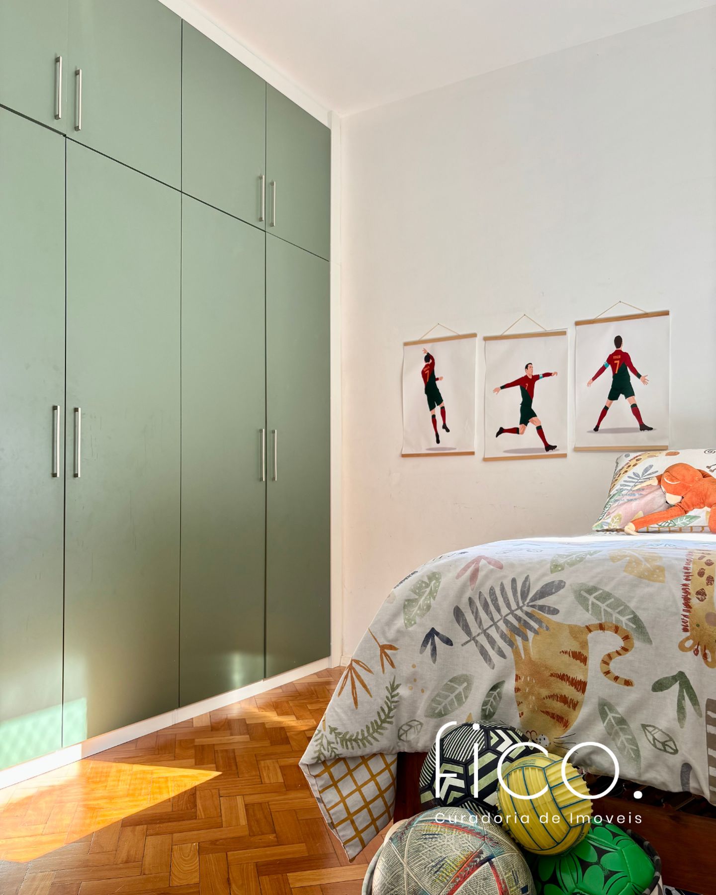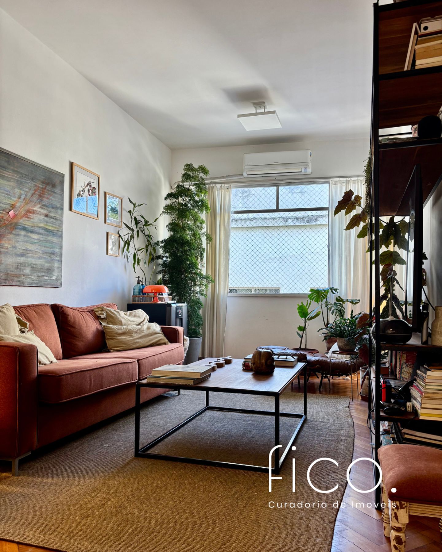 O piso é todo em tacos de madeira, o pé direito é alto e o apartamento é muito claro e ventilado. Possui armários nos quartos, banheiro e cozinha e ar condicionado tipo split nos quartos e sala.