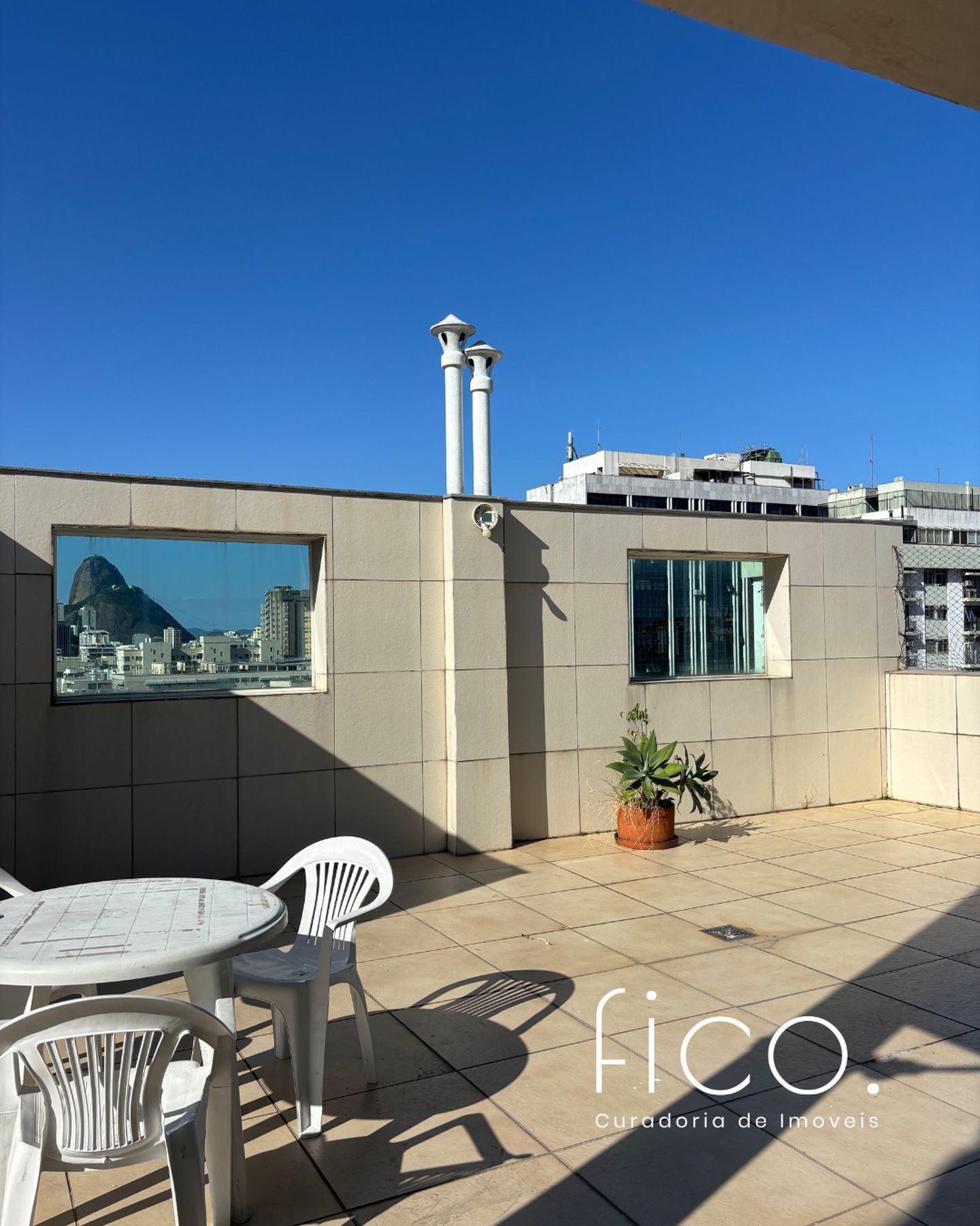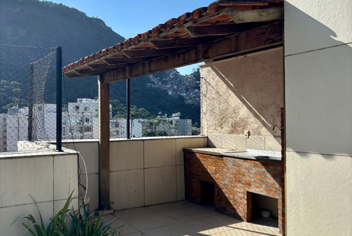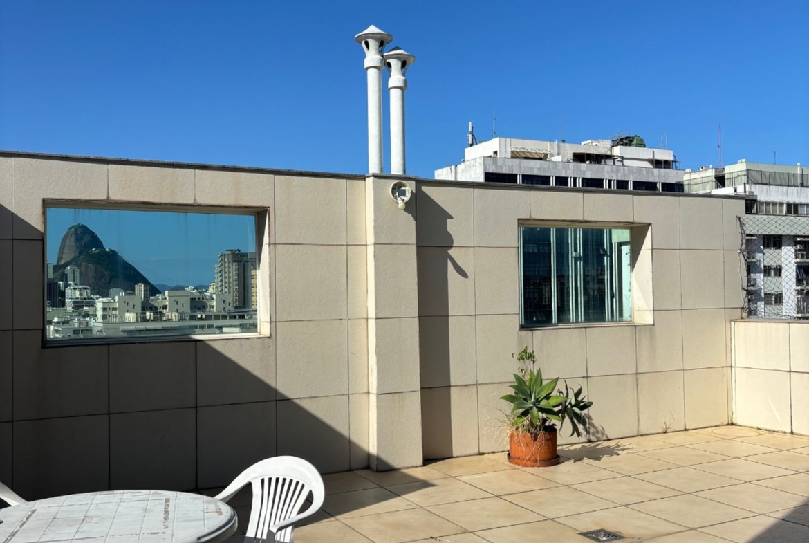 O prédio conta com portaria 24h, garagem e um rooftop com churrasqueira e uma vista 360°, de onde se vê o Cristo e o Pão de Açúcar