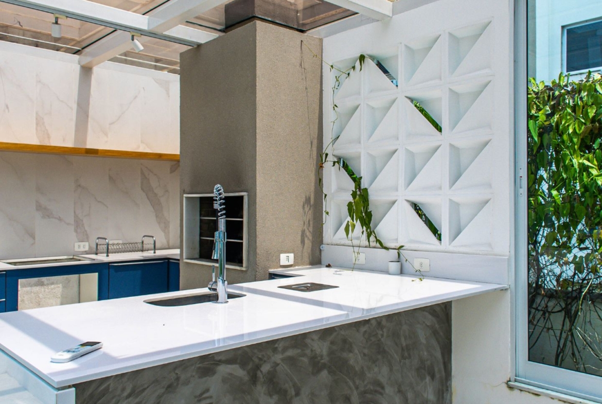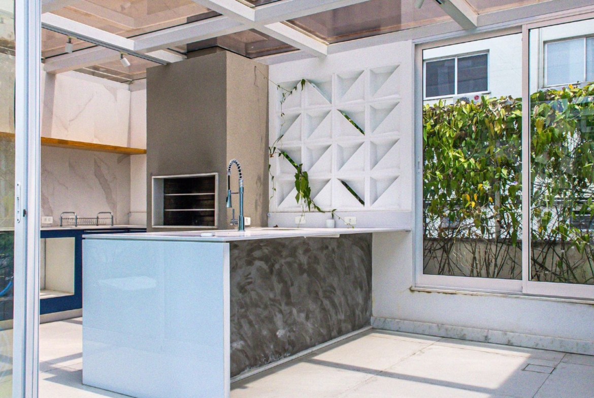 Na área íntima são quatro quartos, sendo três suítes, todos com marcenaria planejada. A área social conta com sala de jantar e uma ampla sala de estar integrada à varanda. A área externa privativa traduz o estilo carioca de liberdade, com jacuzzi, cozinha gourmet planejada, churrasqueira e espaço para receber e celebrar.