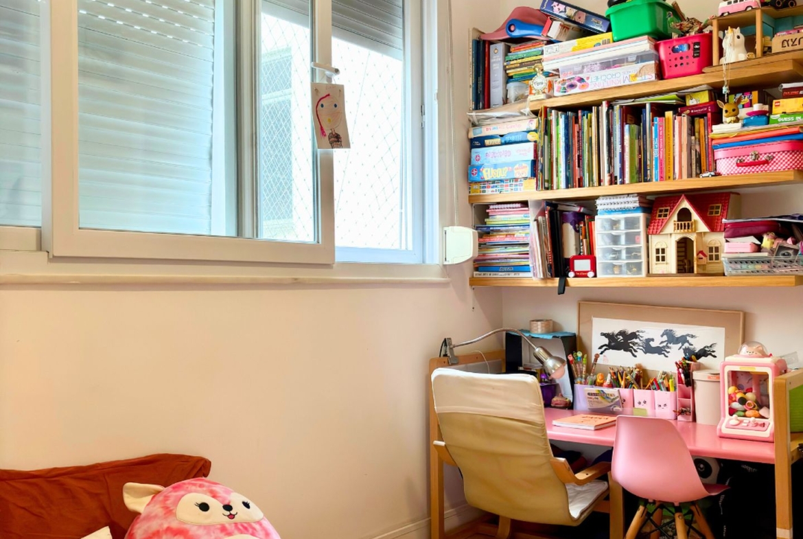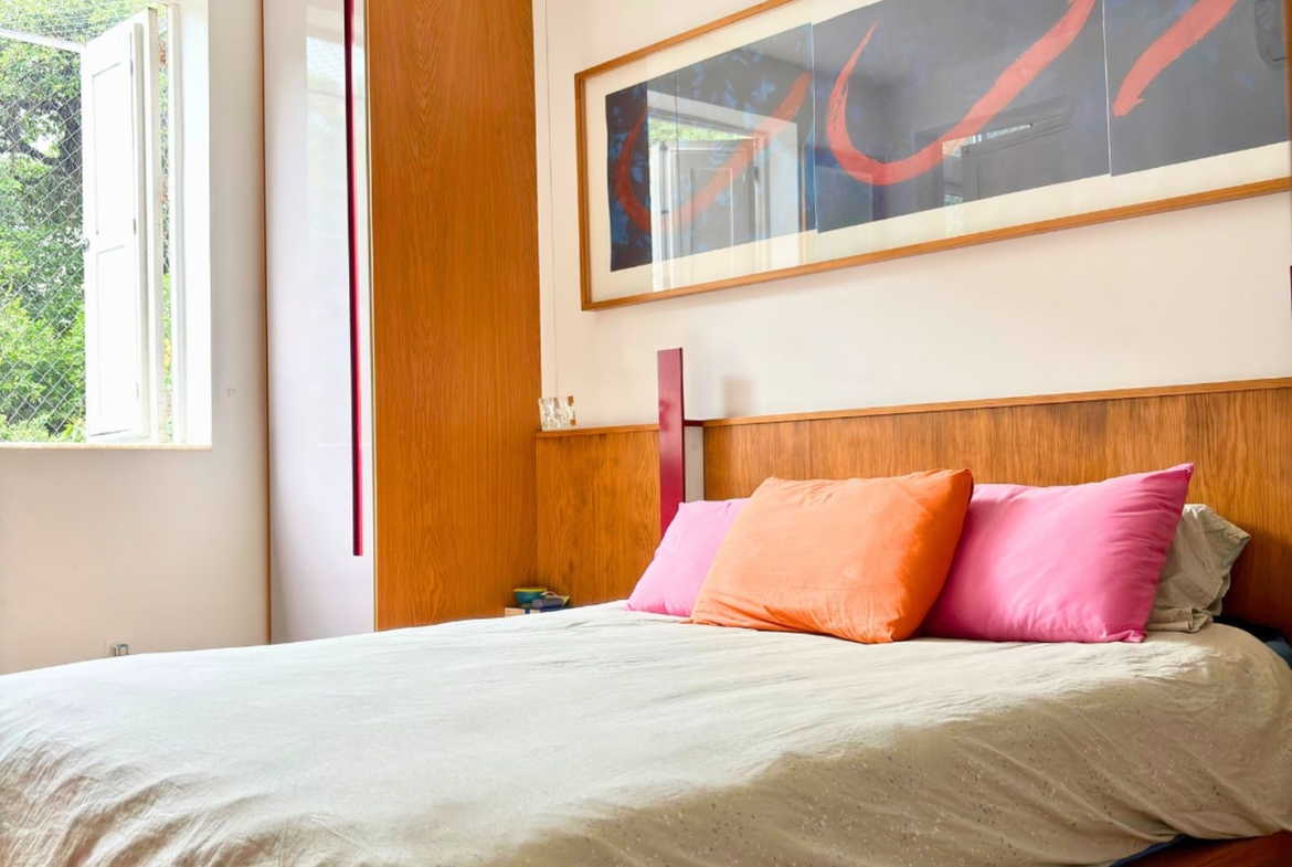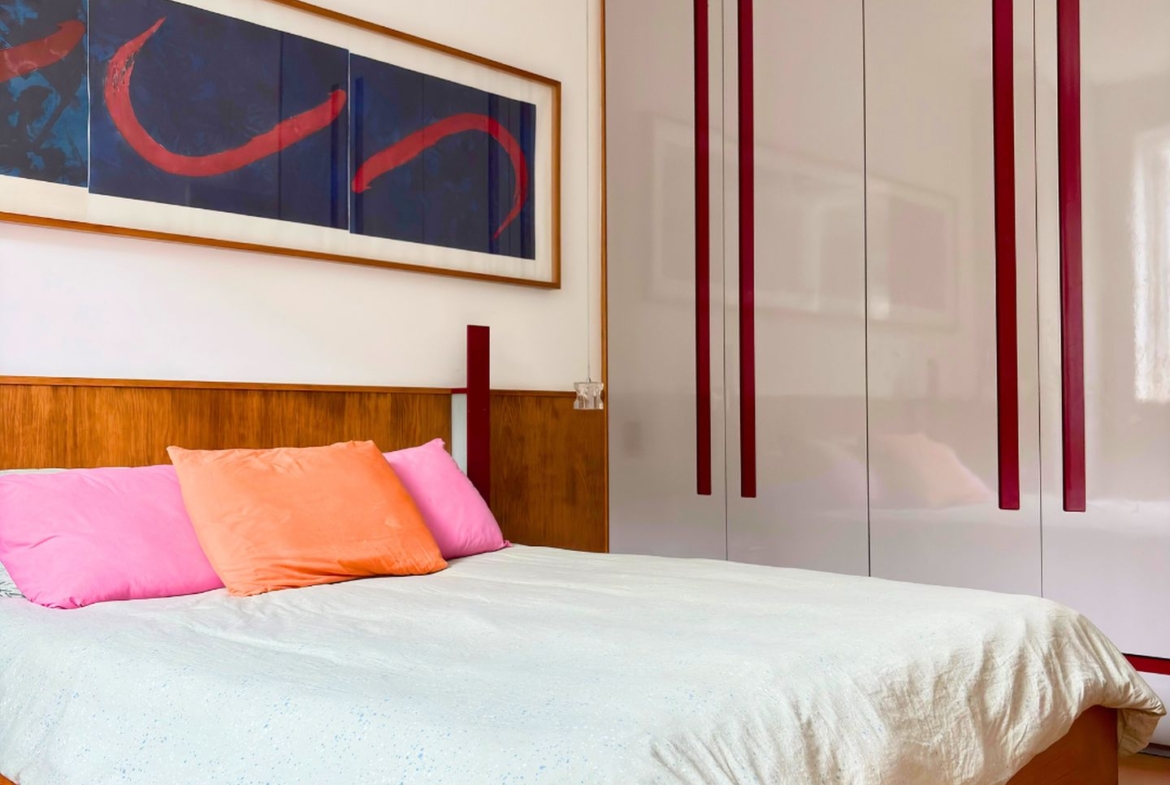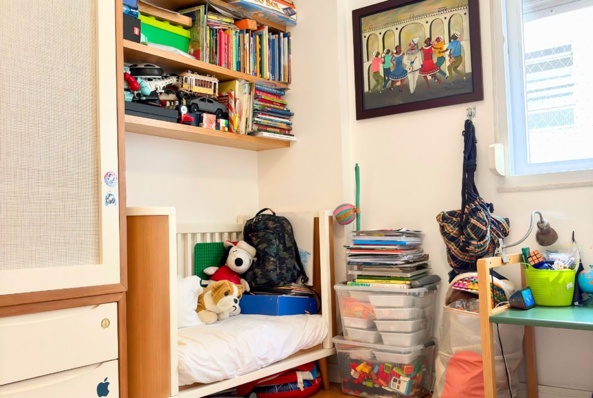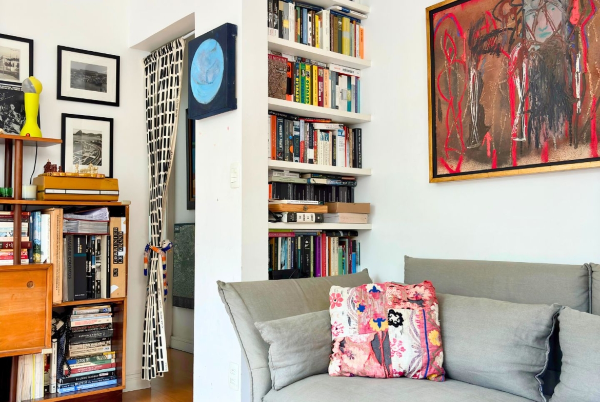 São 89m2 divididos em 3 quartos confortáveis com pé direito alto e muita iluminação e ventilação natural. Reformado em 2017 por arquiteta, o apartamento ganhou um quarto extra, mas que pode ser facilmente revertido. A sala é um ambiente delicioso com vista para a copa das árvores e sol da manhã. O quarto do casal é amplo e arejado, a circulação principal tem uma grande estante e marcenaria desenhada sob medida, com muito espaço para livros e objetos decorativos.