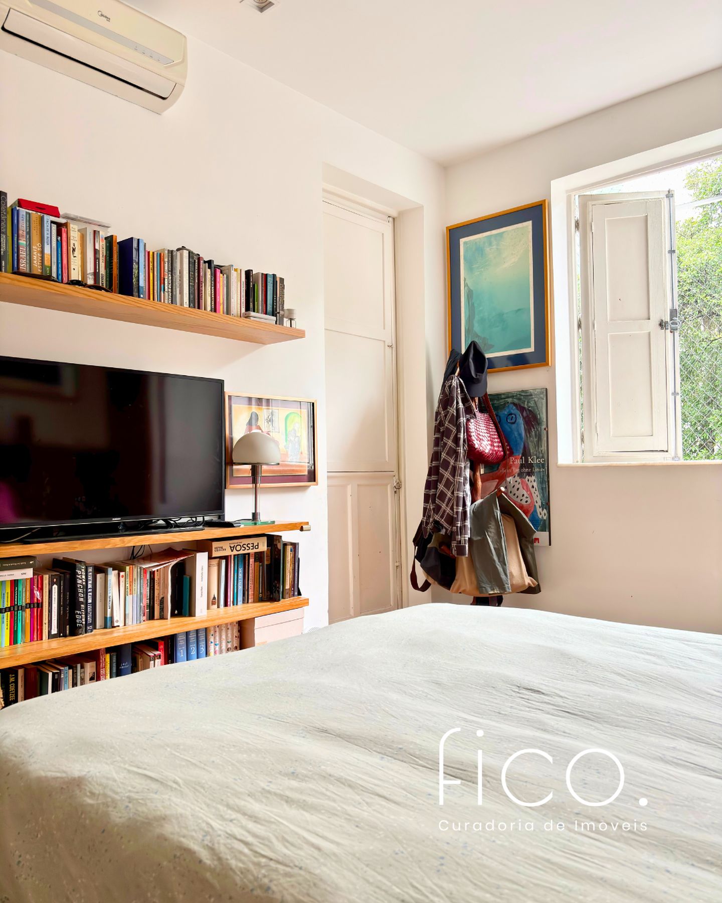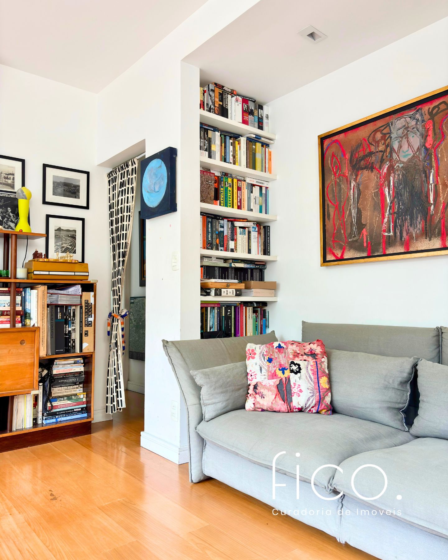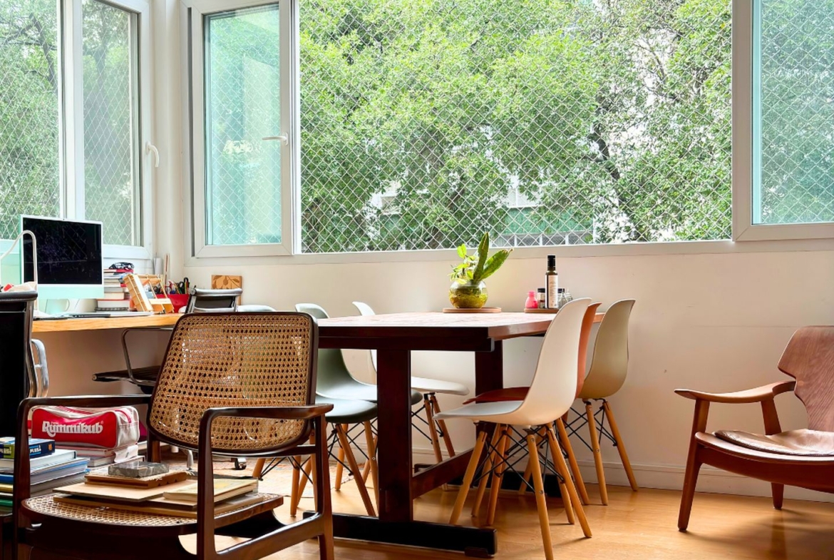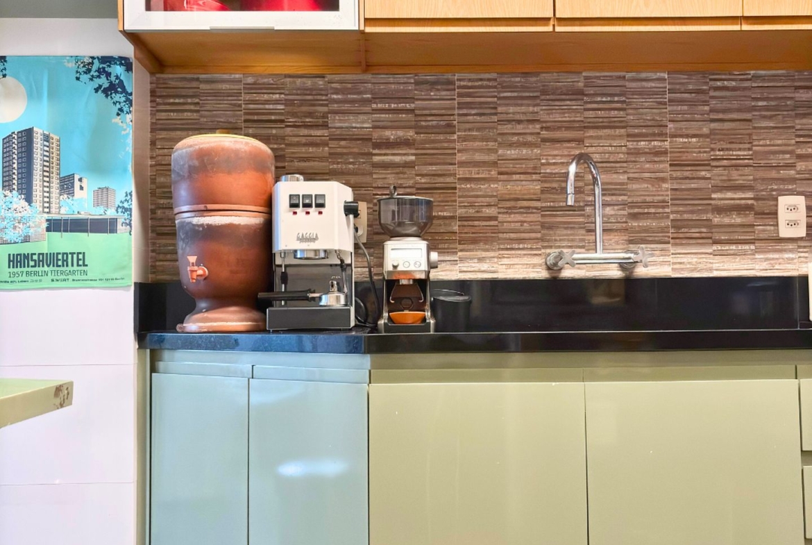 São 89m2 divididos em 3 quartos confortáveis com pé direito alto e muita iluminação e ventilação natural. Reformado em 2017 por arquiteta, o apartamento ganhou um quarto extra, mas que pode ser facilmente revertido. A sala é um ambiente delicioso com vista para a copa das árvores e sol da manhã. O quarto do casal é amplo e arejado, a circulação principal tem uma grande estante e marcenaria desenhada sob medida, com muito espaço para livros e objetos decorativos.