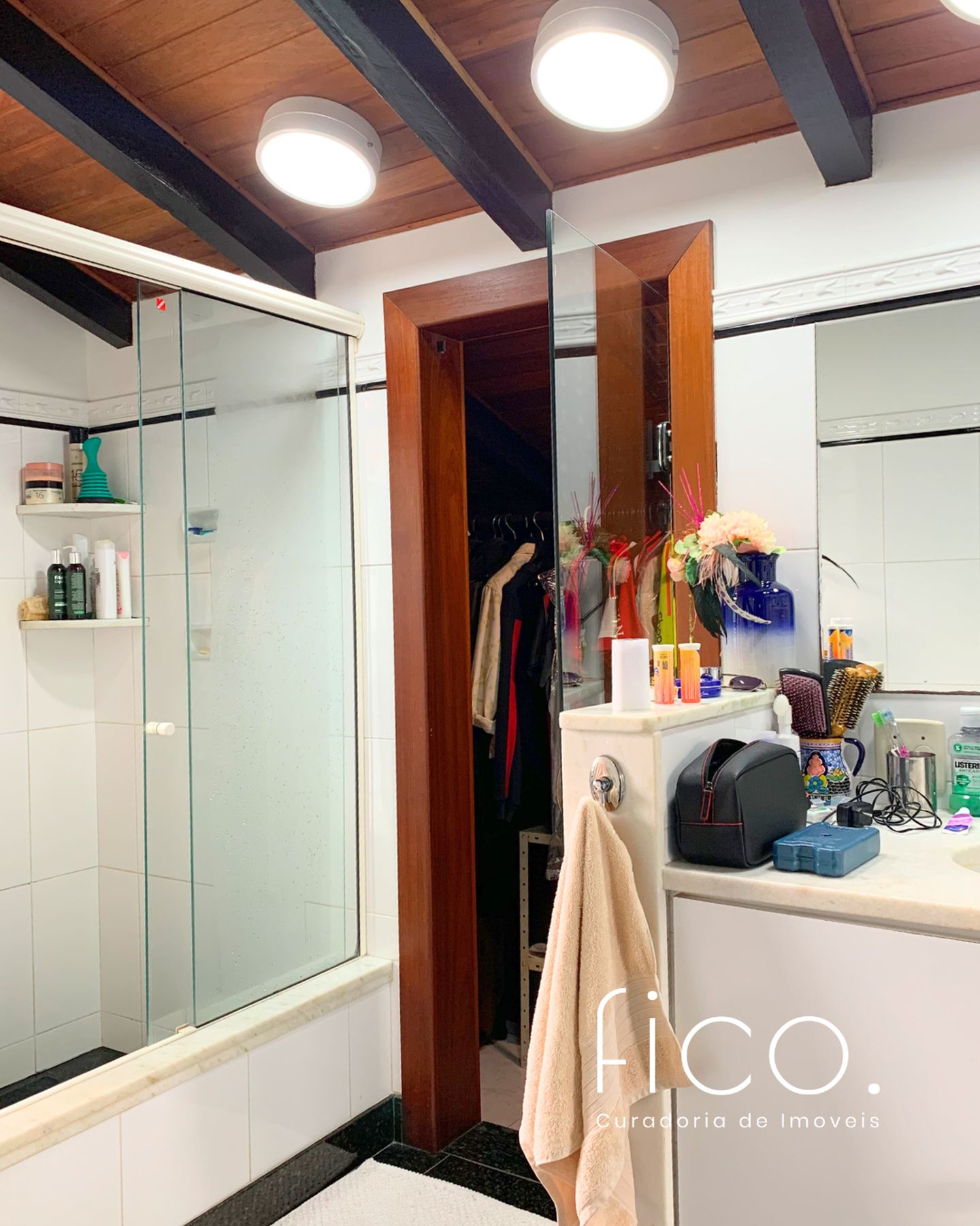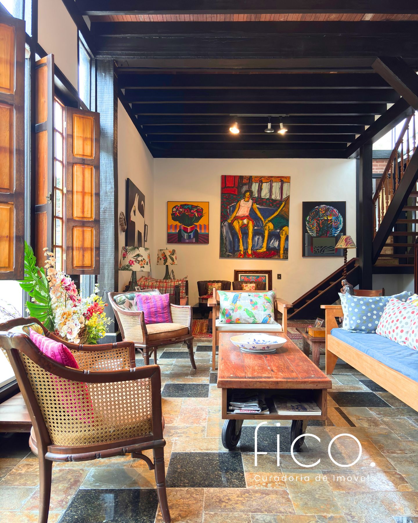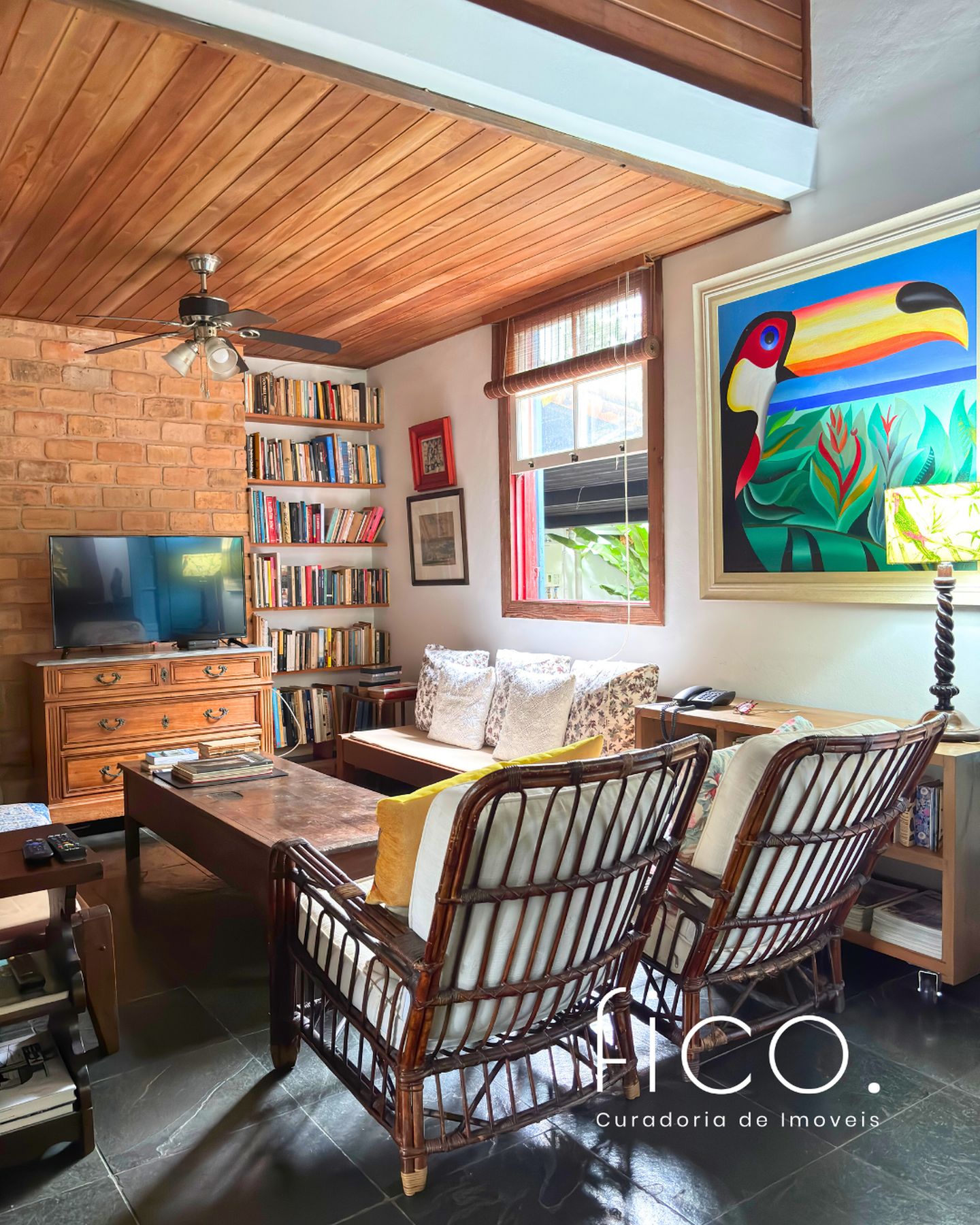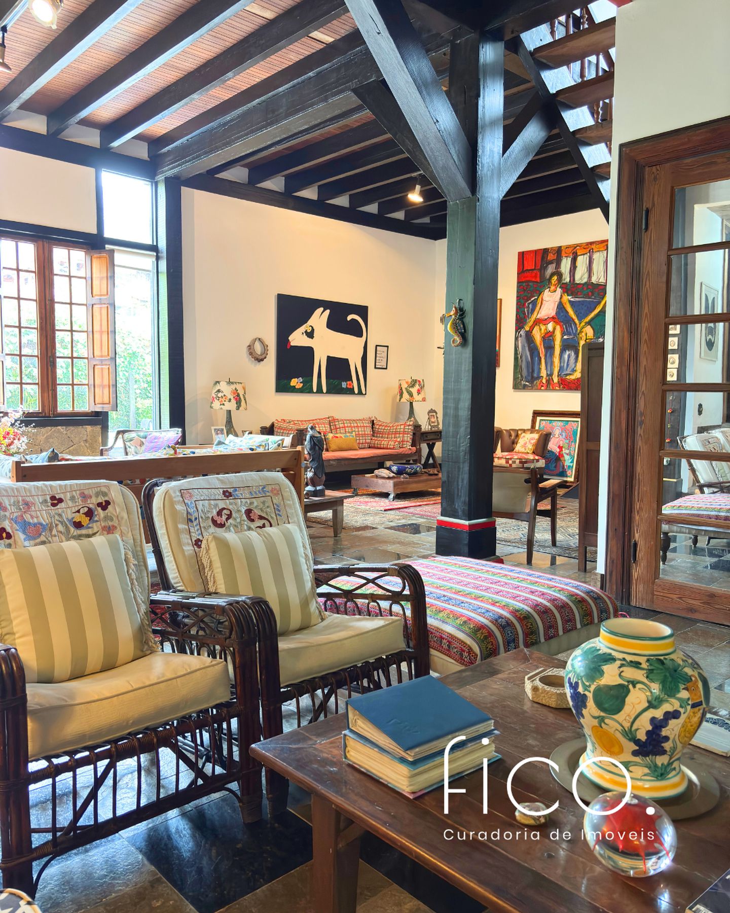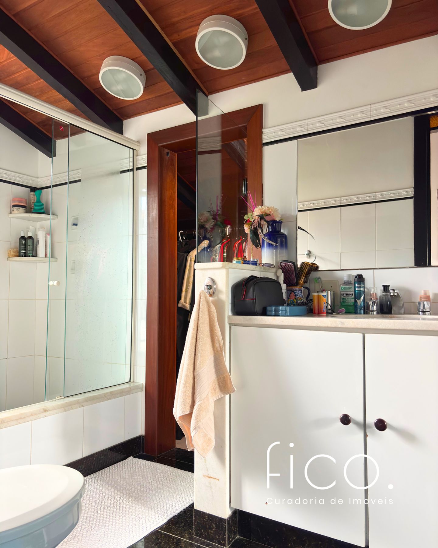 No andar superior fica a área íntima, com quatro quartos, sendo um com escritório e duas suítes com closet. Uma delas tem ainda uma charmosa varanda com vista para o verde. Toda a parte interna com lindo piso em tábuas corridas de Ipê Tabaco.