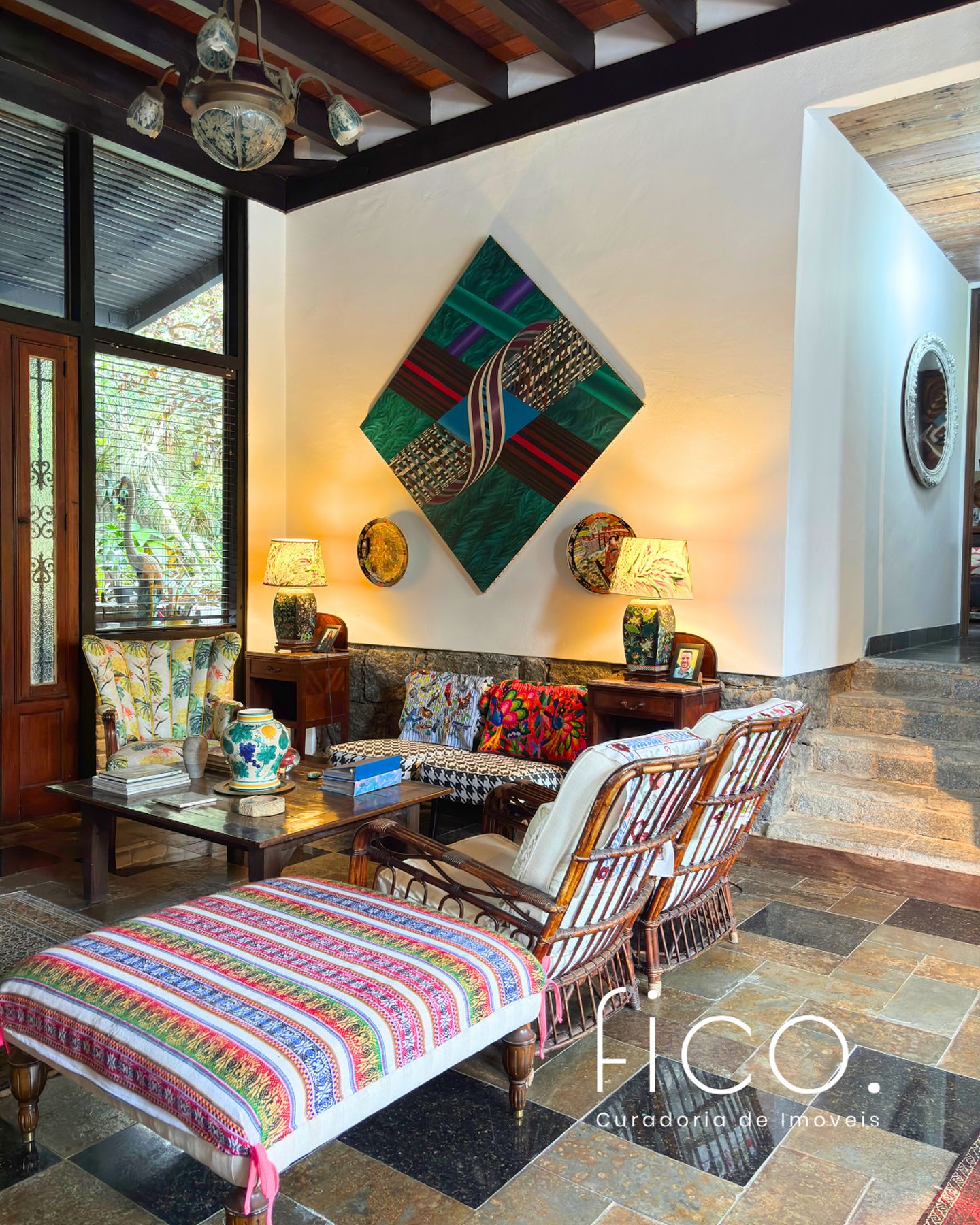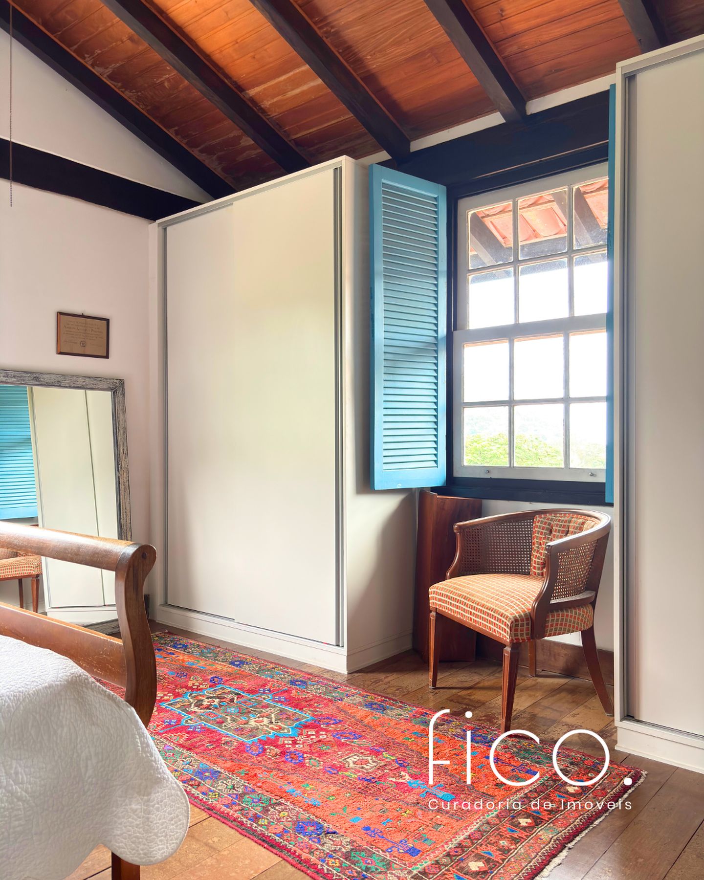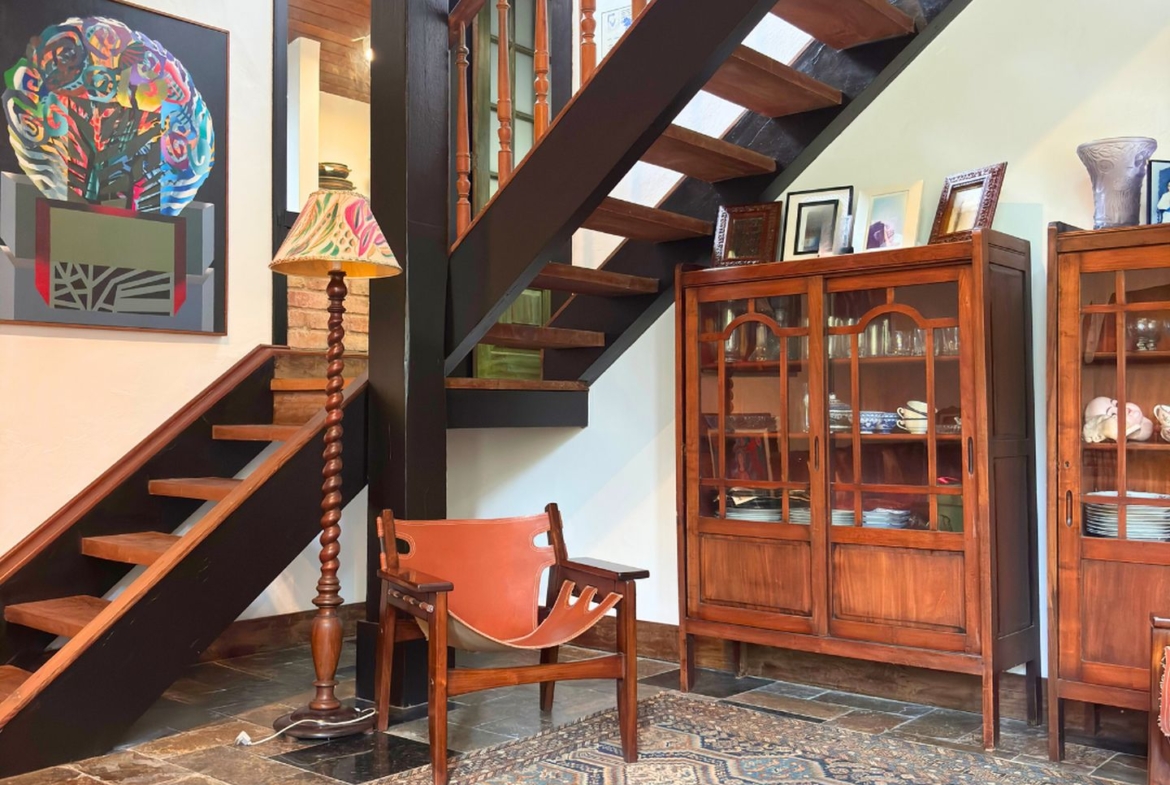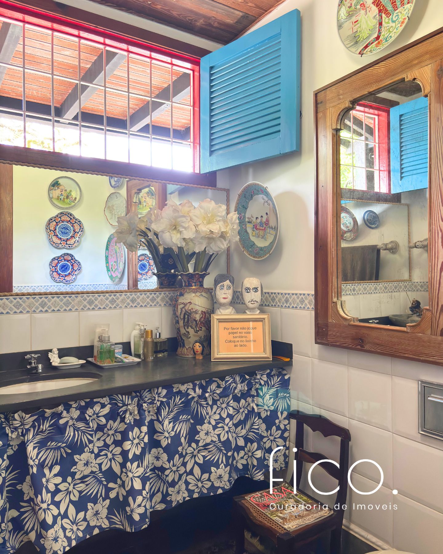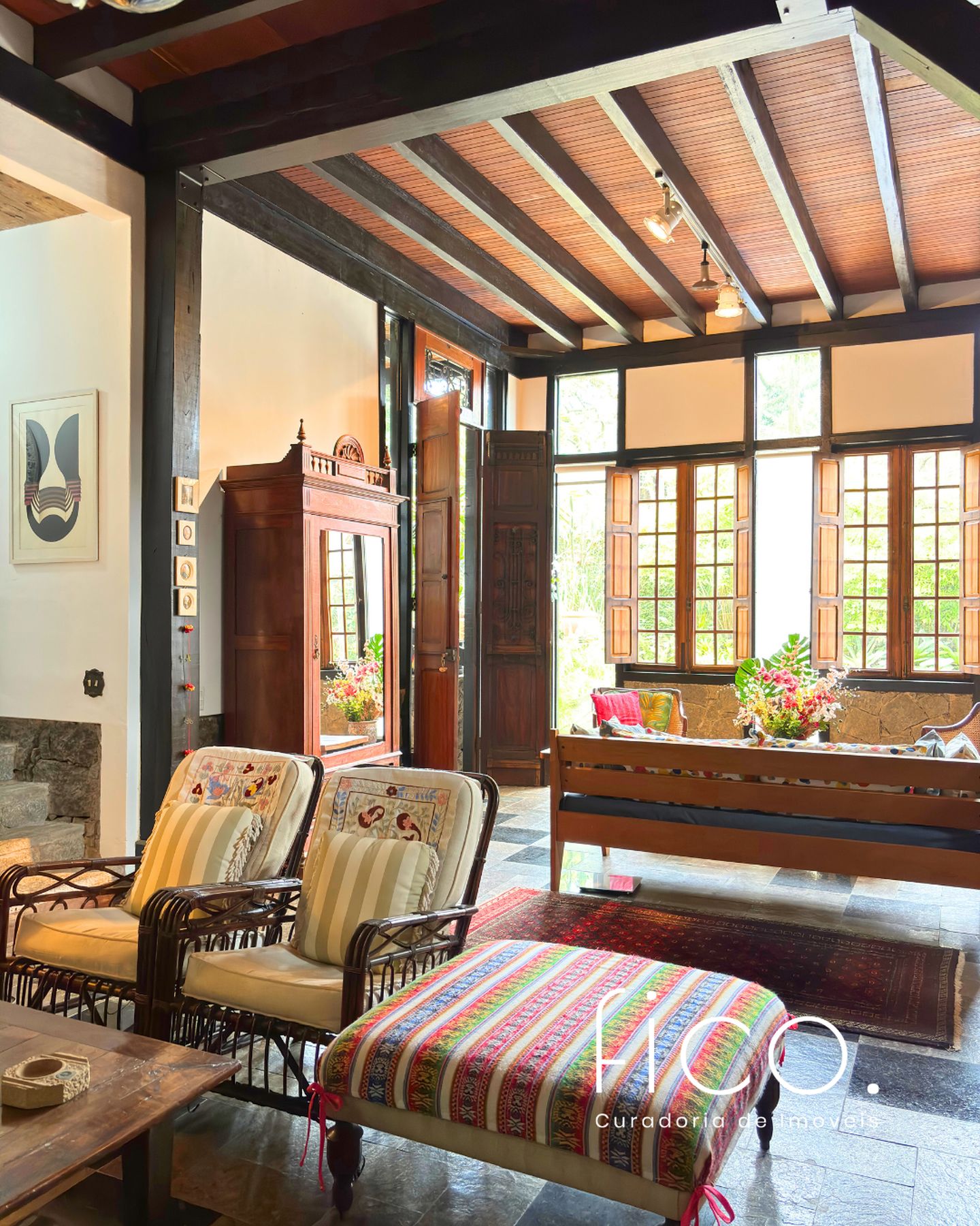 No andar superior fica a área íntima, com quatro quartos, sendo um com escritório e duas suítes com closet. Uma delas tem ainda uma charmosa varanda com vista para o verde. Toda a parte interna com lindo piso em tábuas corridas de Ipê Tabaco.