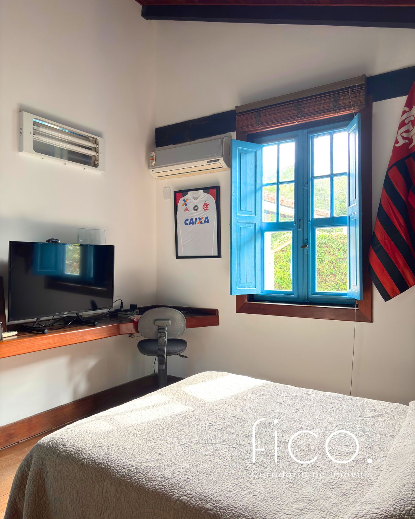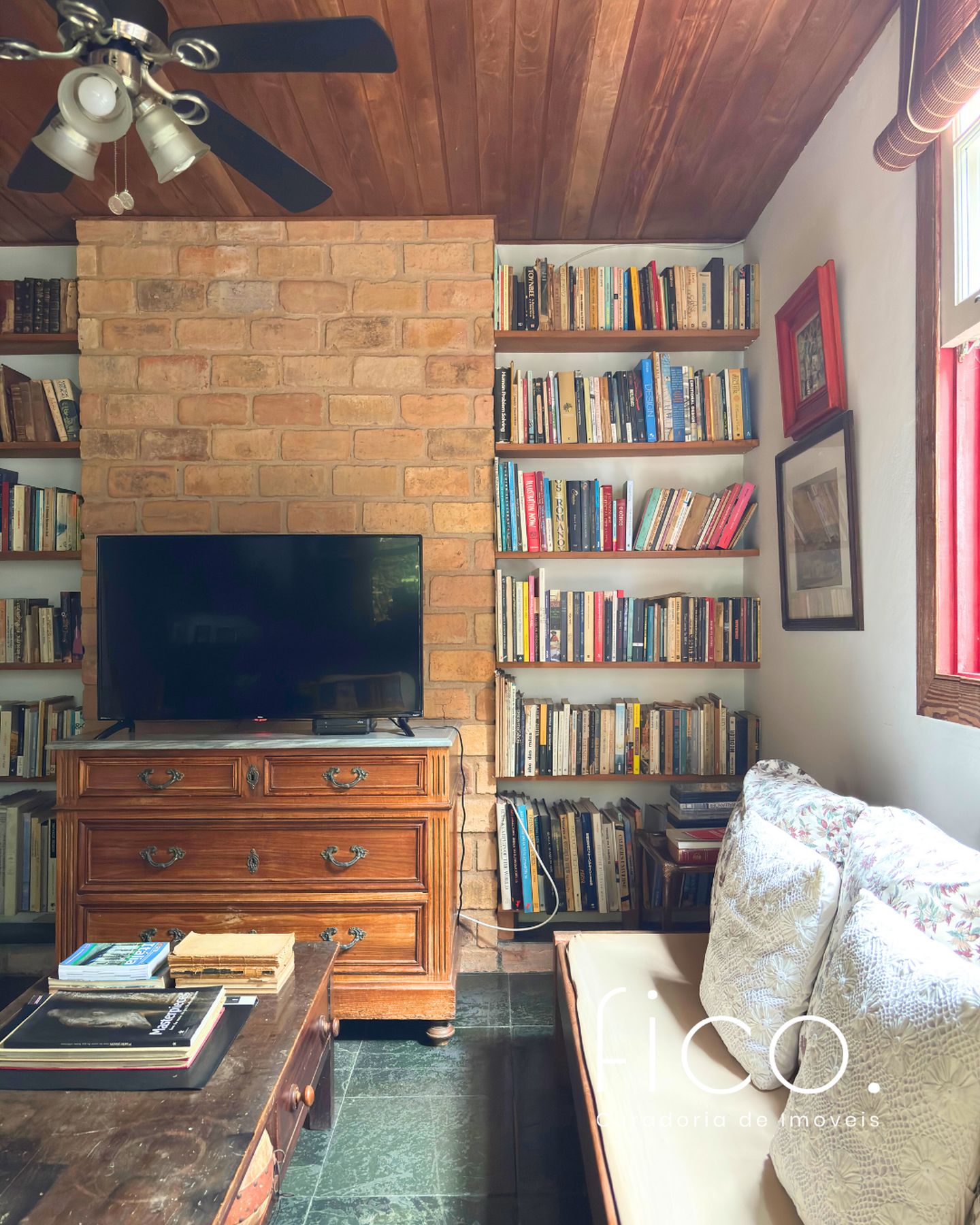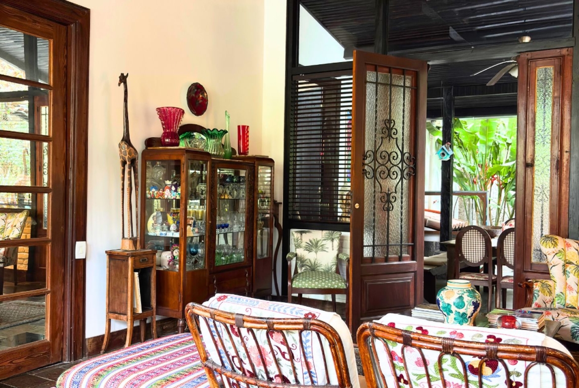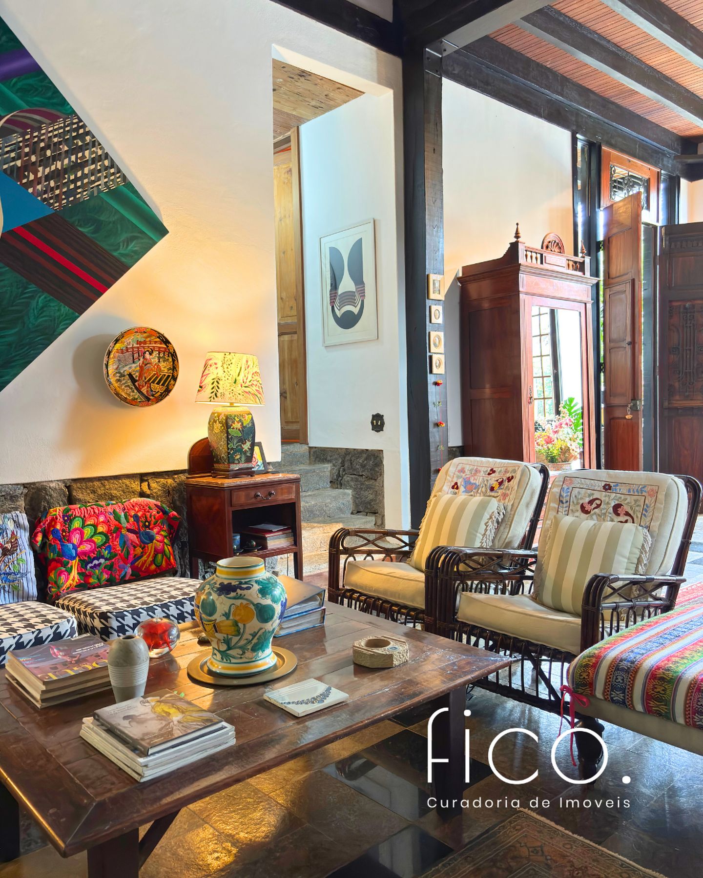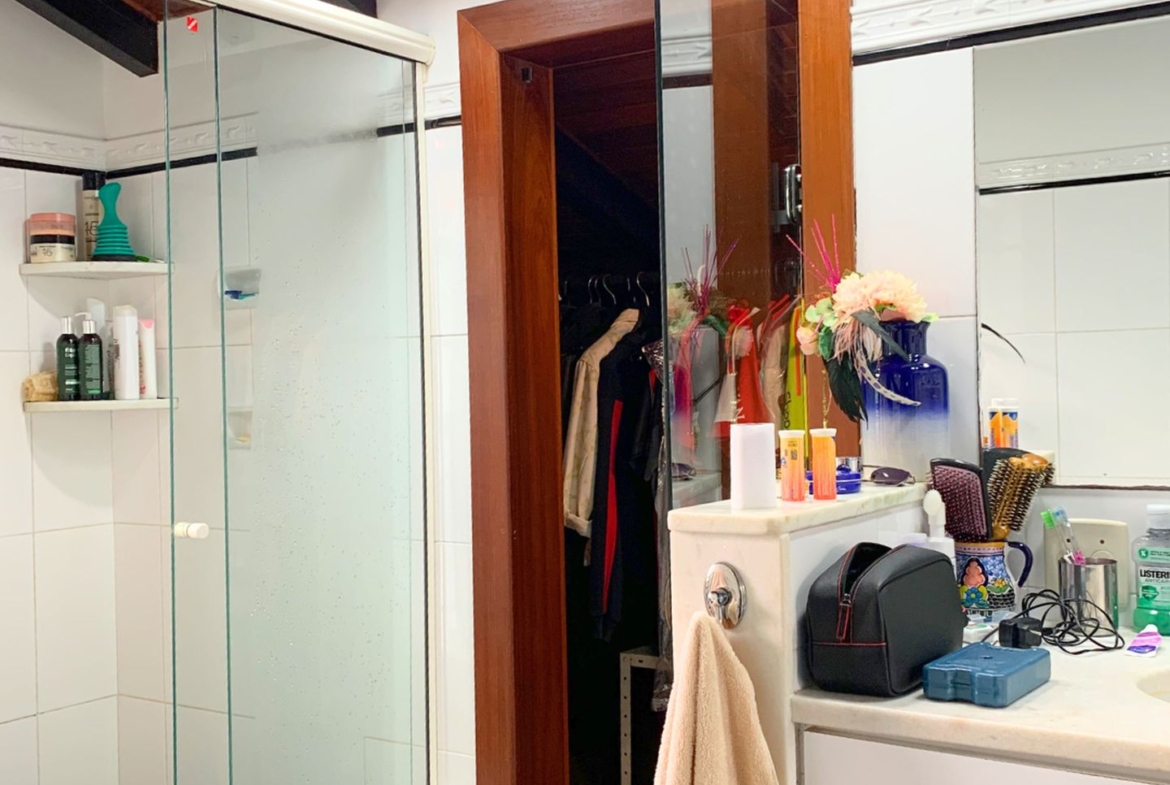 No andar superior fica a área íntima, com quatro quartos, sendo um com escritório e duas suítes com closet. Uma delas tem ainda uma charmosa varanda com vista para o verde. Toda a parte interna com lindo piso em tábuas corridas de Ipê Tabaco.