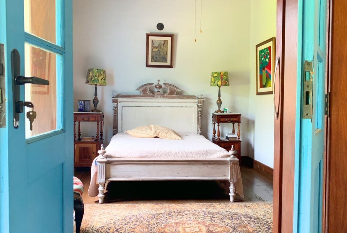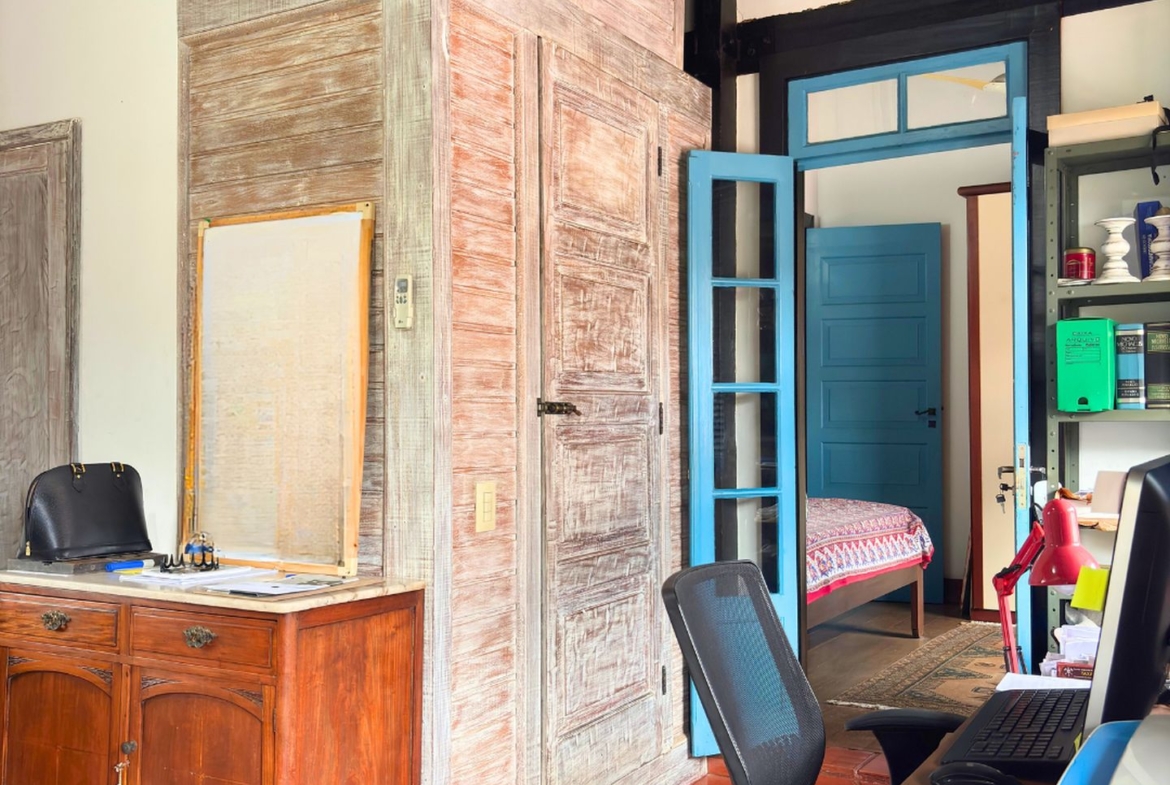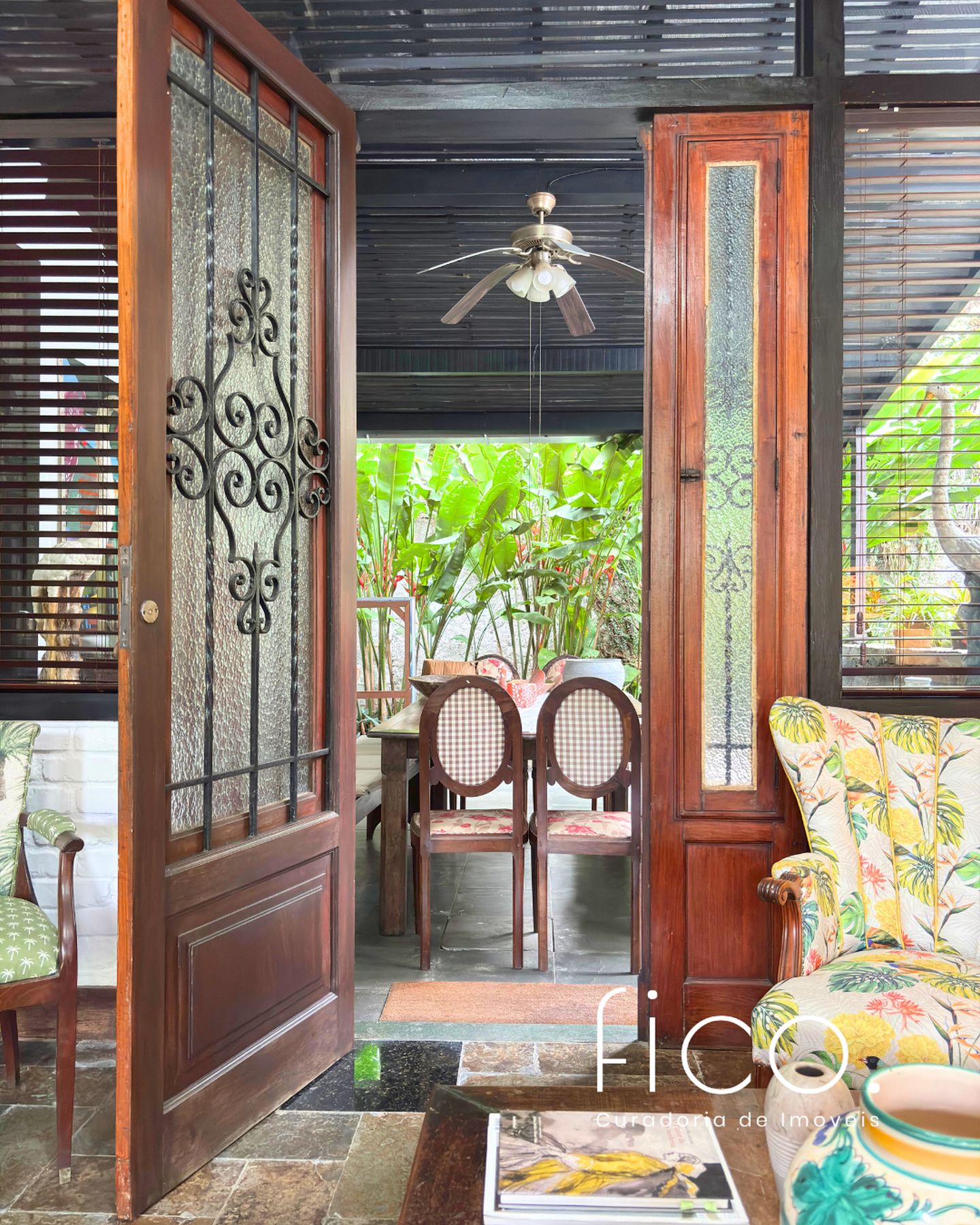 A casa está em excelente estado de conservação e é muito charmosa. Nos chamou a atenção as lindas portas em Pinho de Riga. Descobrimos que algumas delas vieram da demolição de casas para a construção do metrô do Estácio.