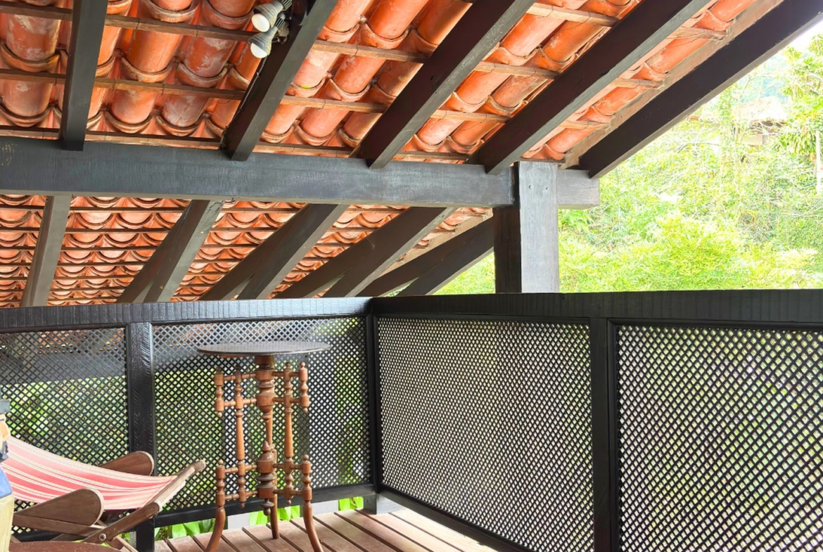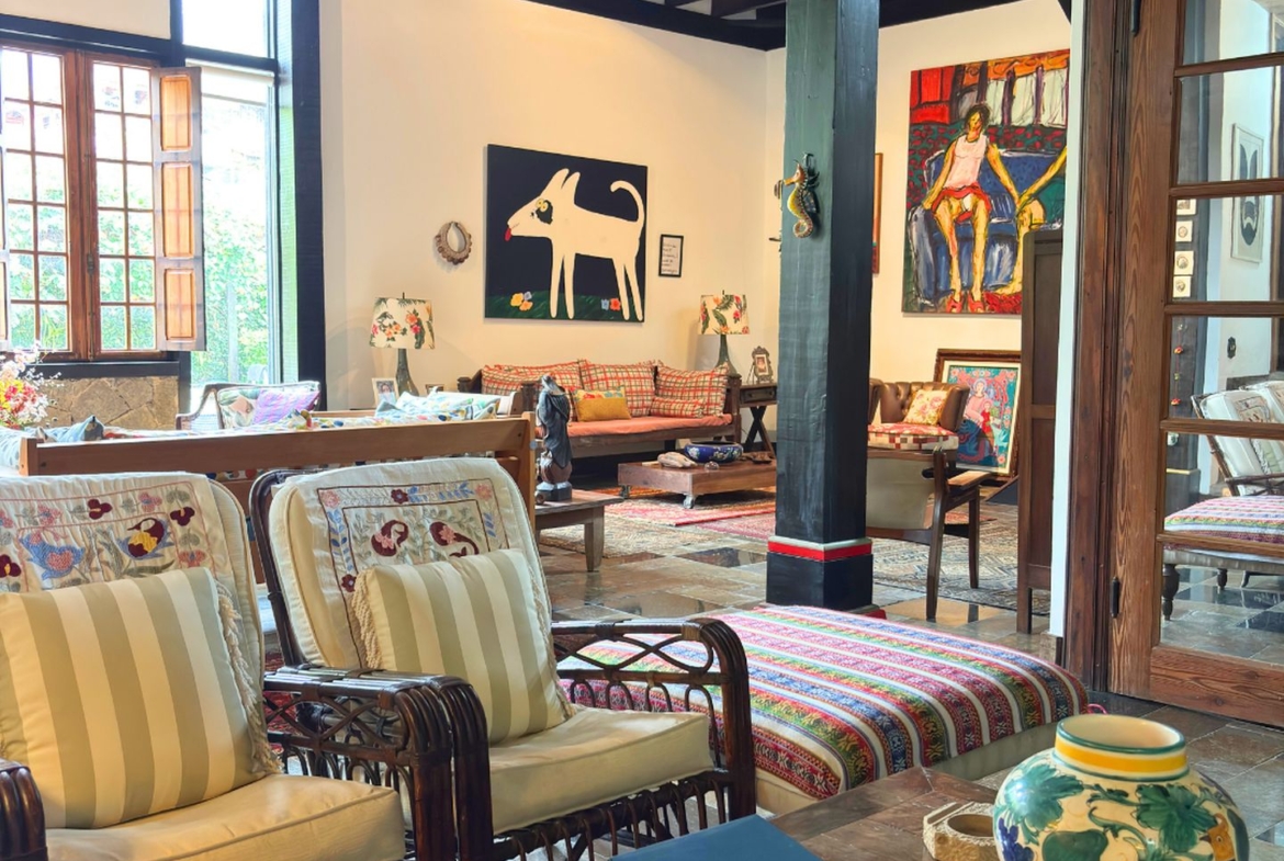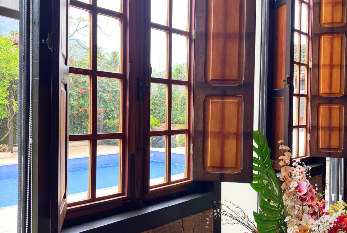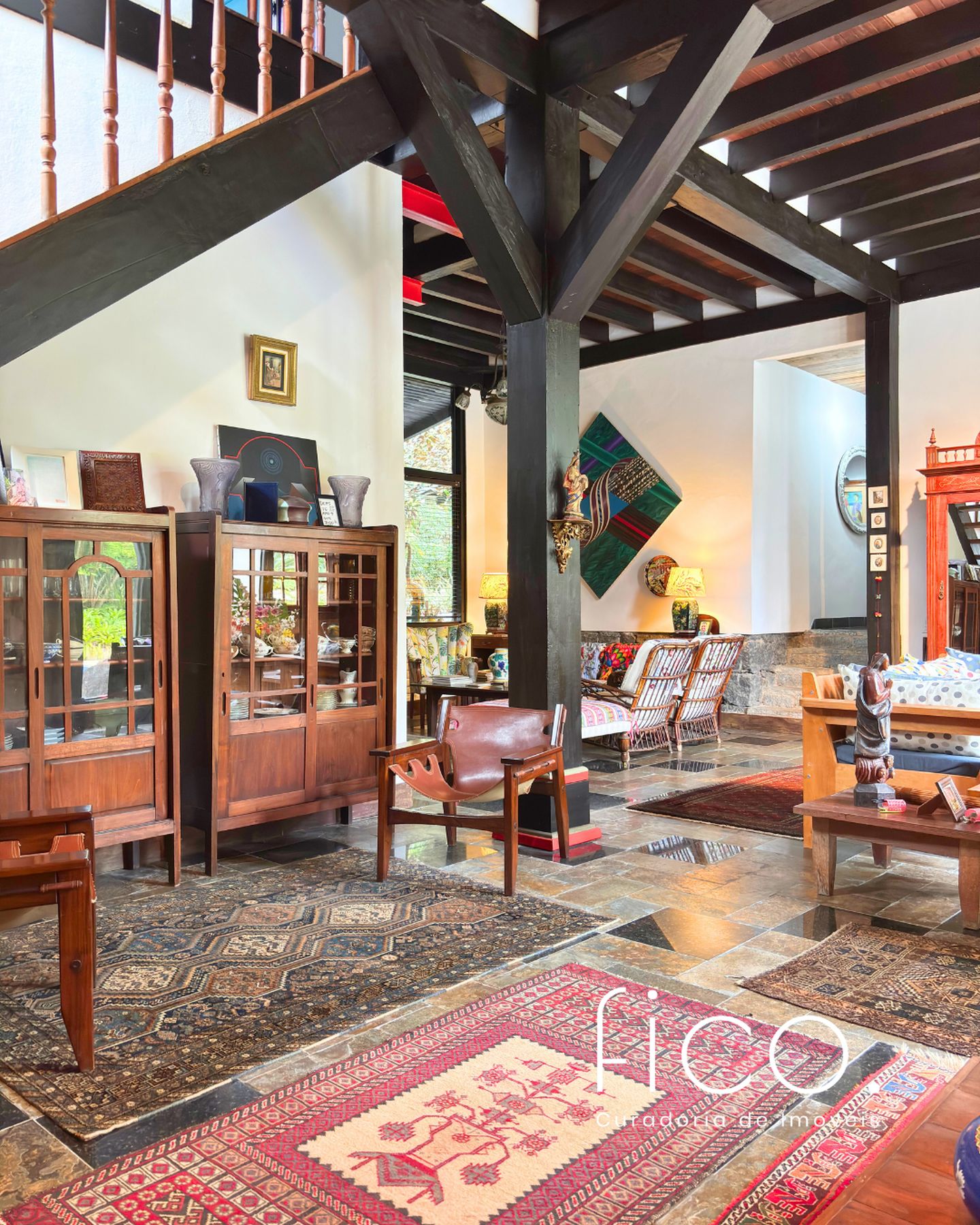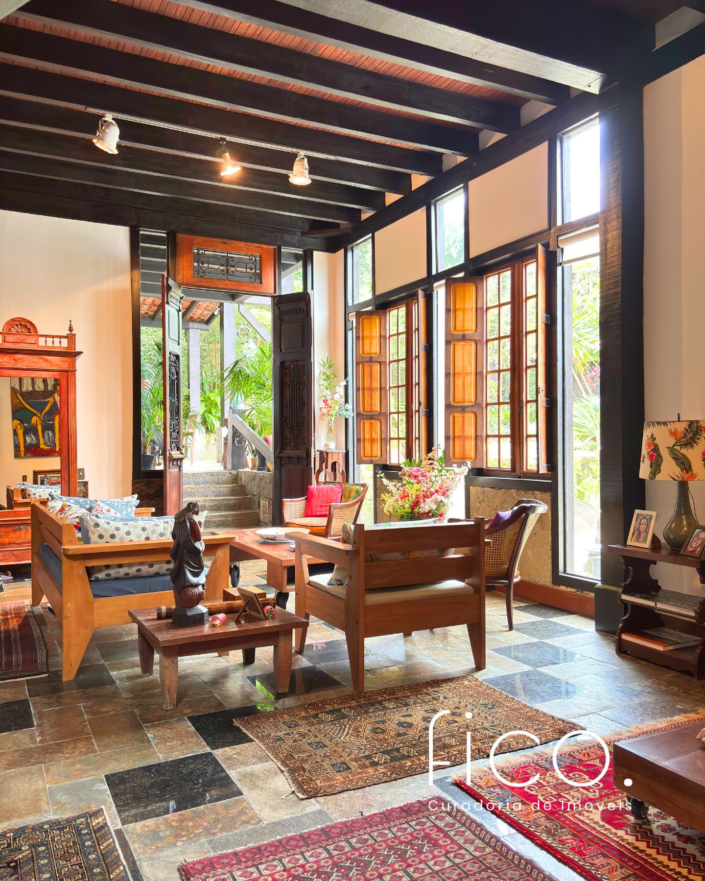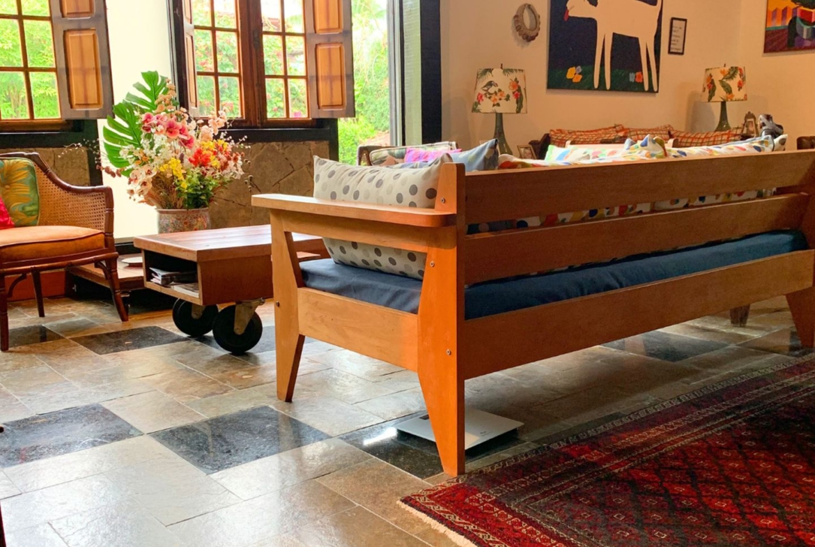 O projeto é do renomado arquiteto Zanine Caldas e une materiais muito usados em sua arquitetura, como madeira, vidro e pedras.