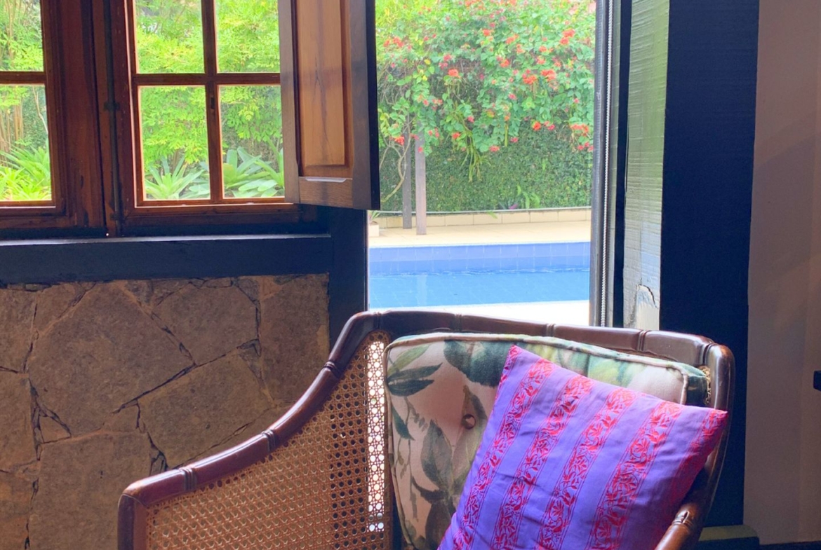 É cercada de muito verde e tem vista para as montanhas do Itanhangá.