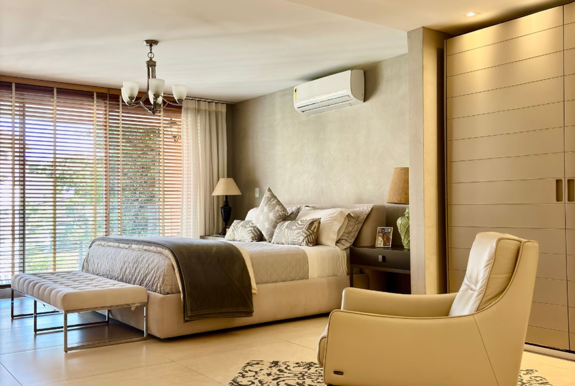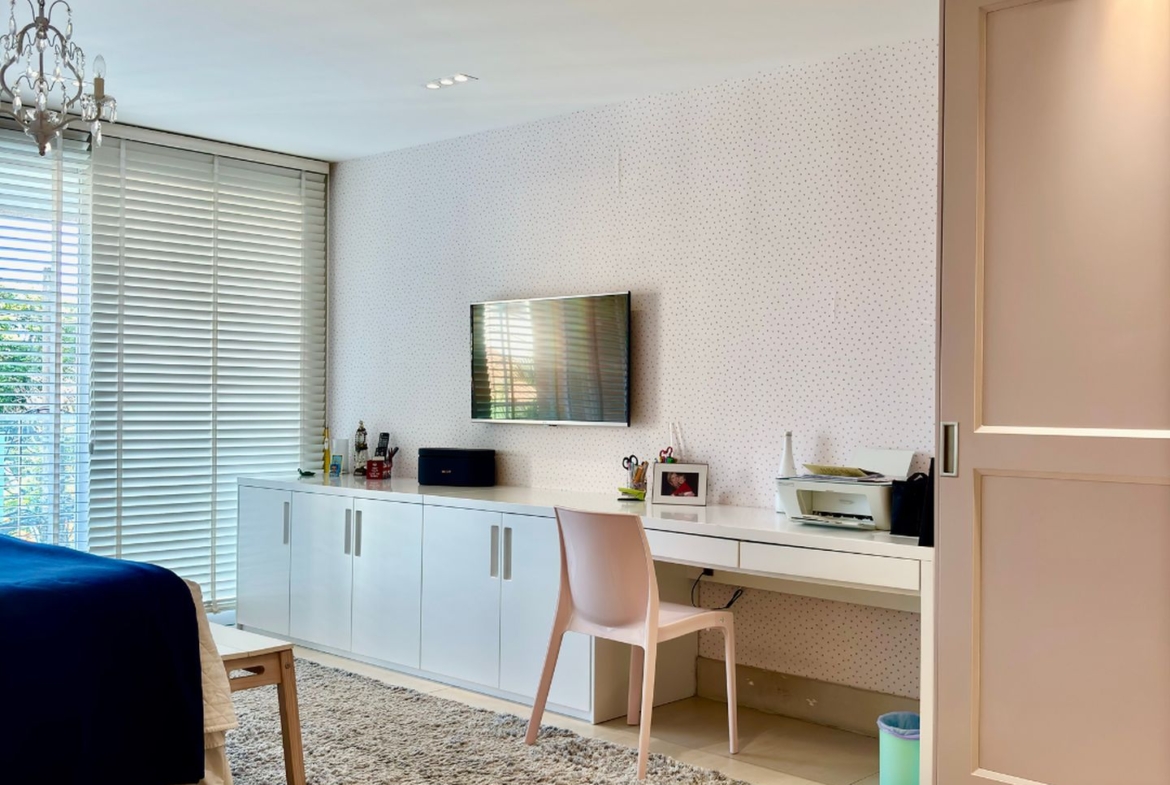 O pavimento superior é composto por cinco quartos, sendo três ótimas suítes e ainda varanda em toda a extensão da frente, incluindo a suíte master.