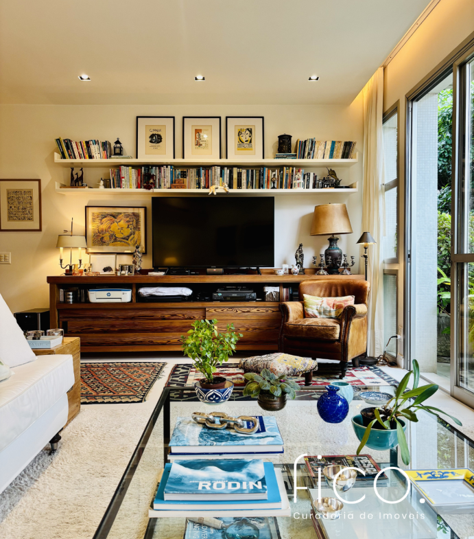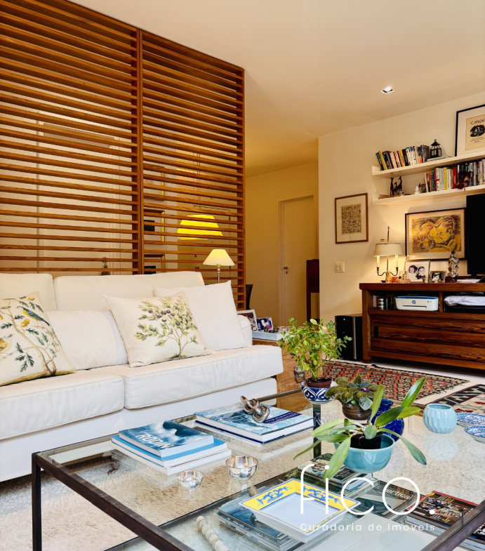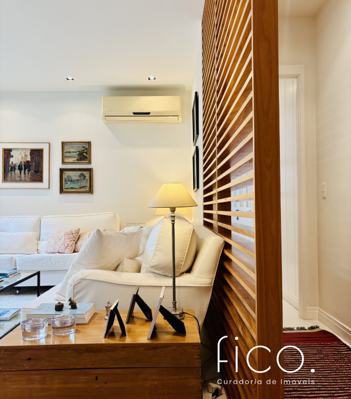 Com ótima planta, super claro e arejado, original dois quartos, teve um deles incorporado à sala, que ficou muito ampla e ao mesmo tempo aconchegante. Para quem precisa dos dois quartos, a reversão é bem fácil. A suíte é muito confortável e o banheiro é um caso de amor! A cozinha é espaçosa e eficiente, com boa área e dependências completas de serviço. Tem ainda um charmoso banheiro social completo, que atende as visitas, sacada, ar condicionado tipo split na sala e quarto e muitos armários.