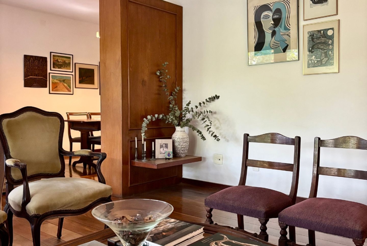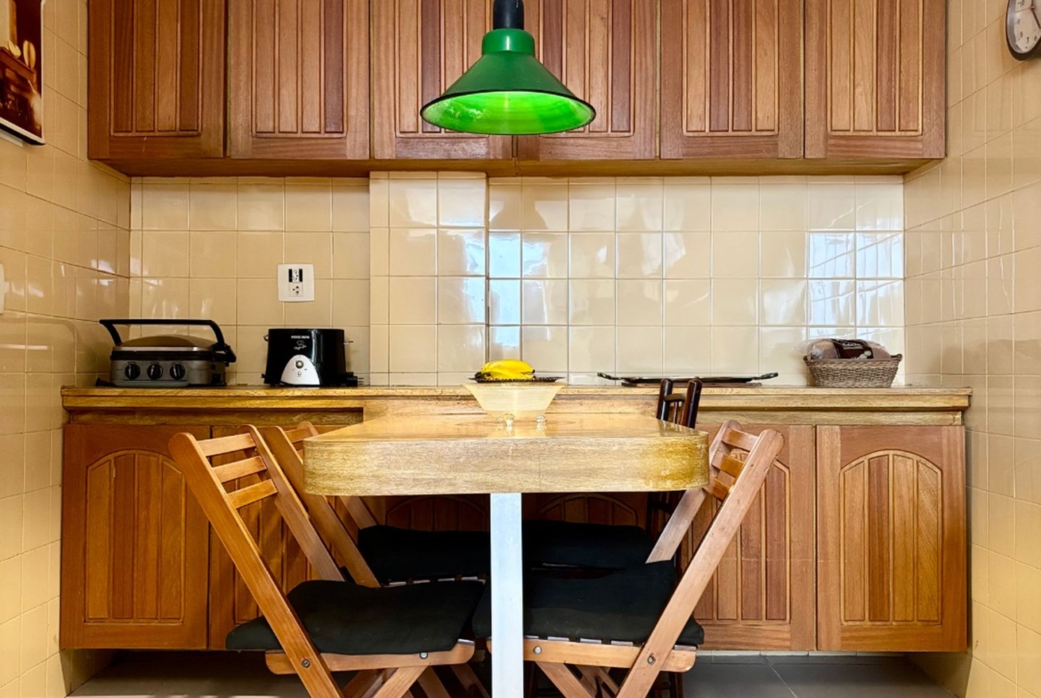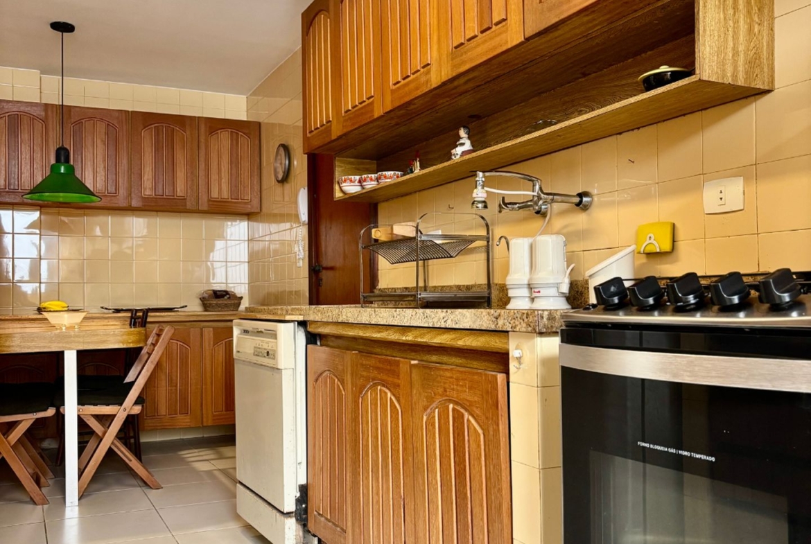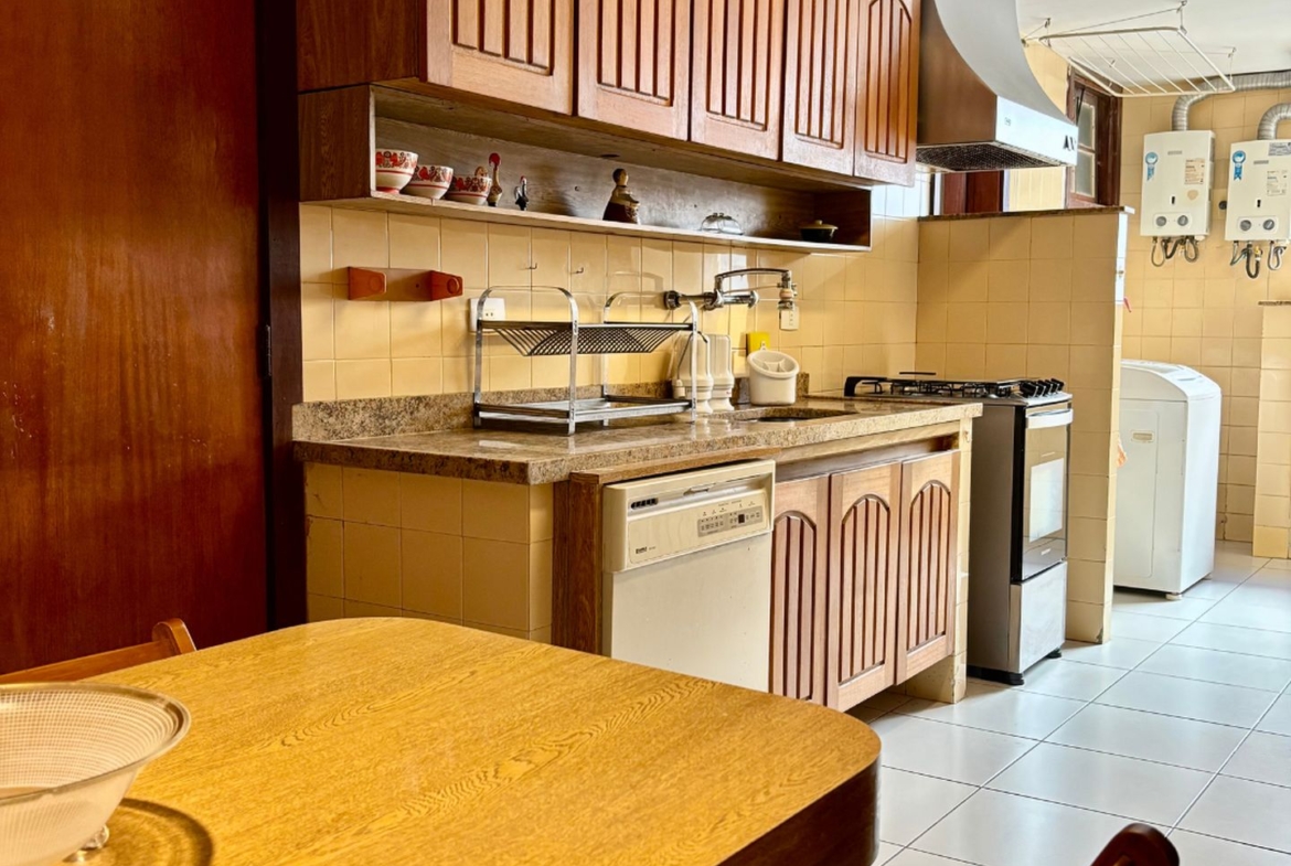Precisando de modernização, tem lindo piso em tábuas corridas de Ipê e uma planta que permite abertura de cozinha americana, além da reversão do quarto de serviço para a área íntima.