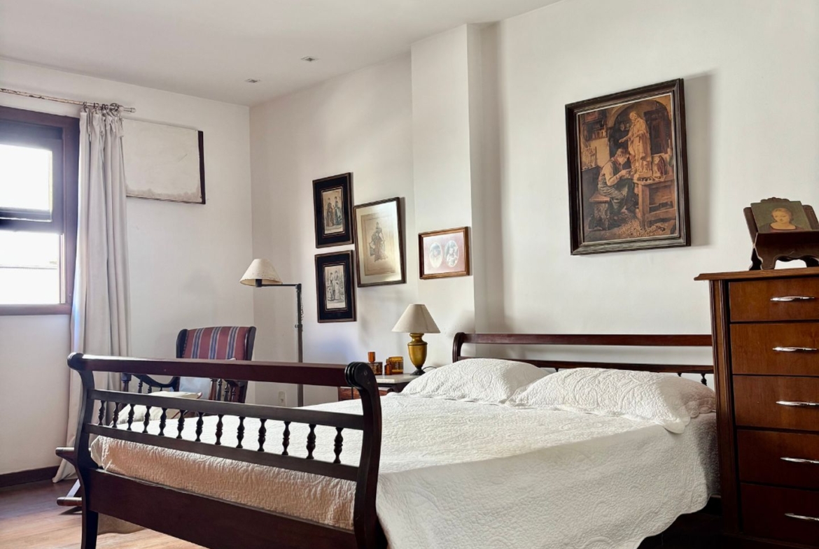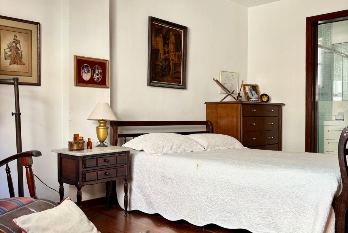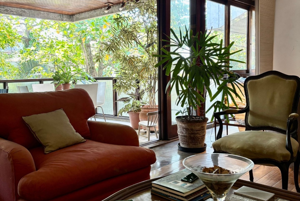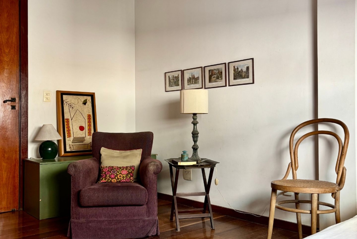 Precisando de modernização, tem lindo piso em tábuas corridas de Ipê e uma planta que permite abertura de cozinha americana, além da reversão do quarto de serviço para a área íntima.