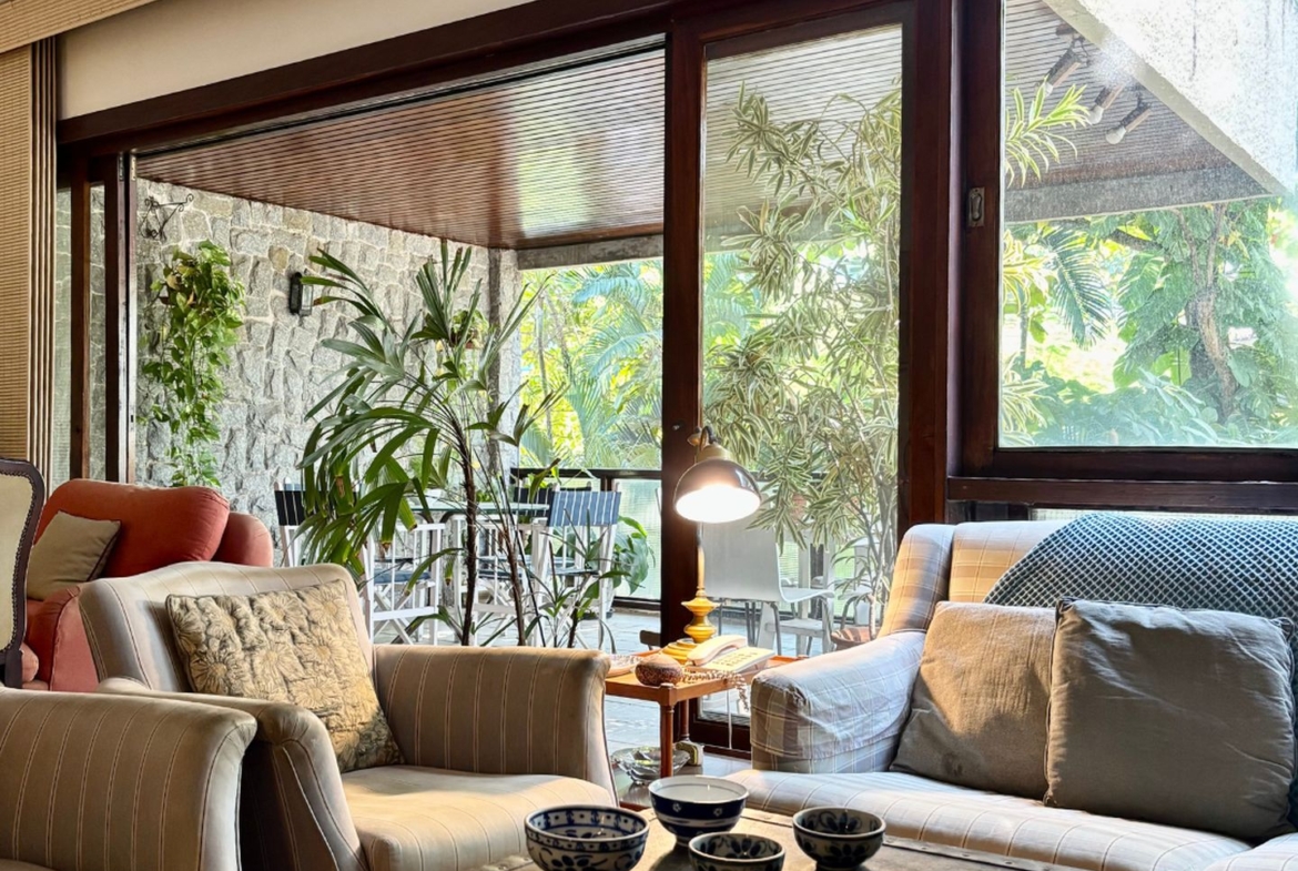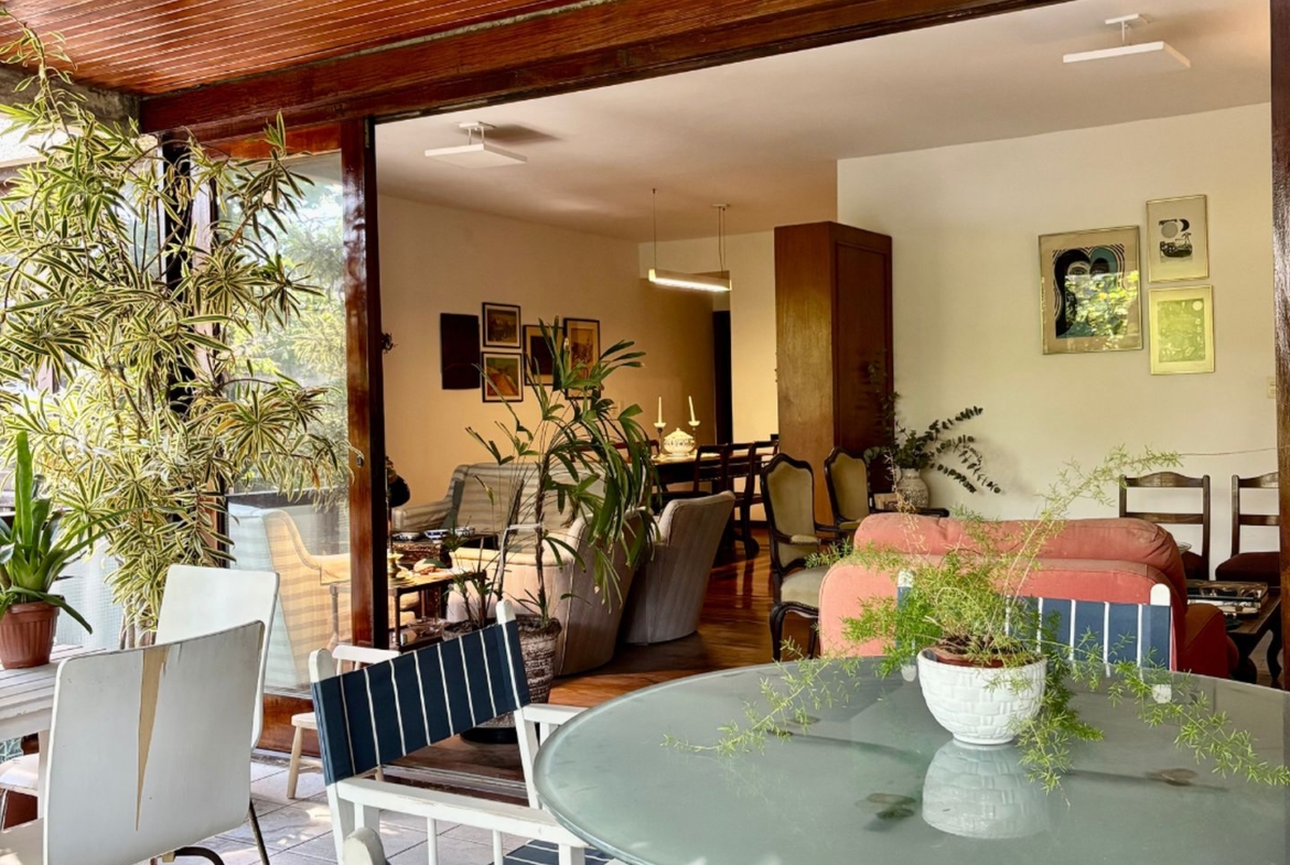 São três quartos, sendo uma espaçosa suíte, sala em três ambientes, varandão, lavabo, ampla copa cozinha e dependências completas.
