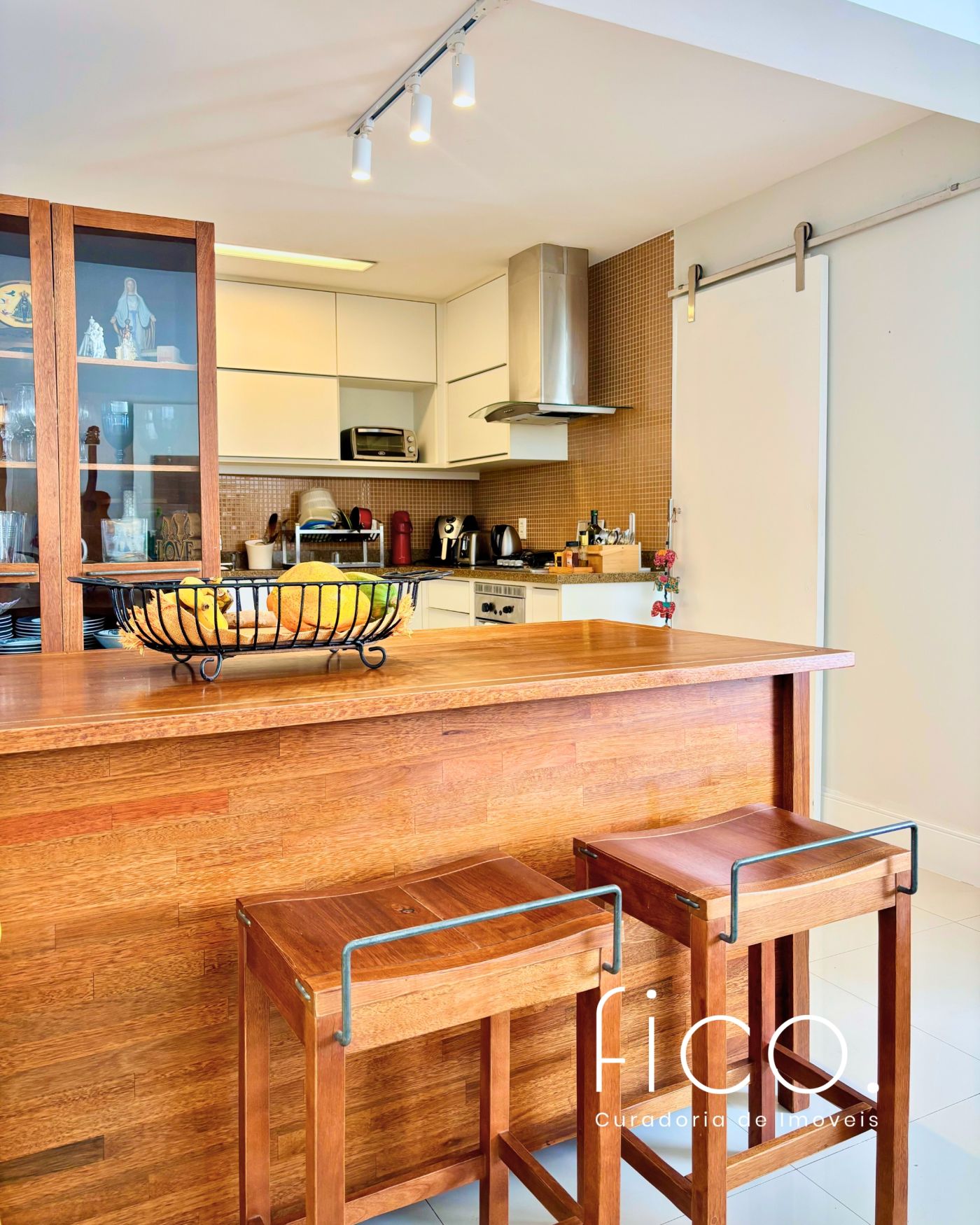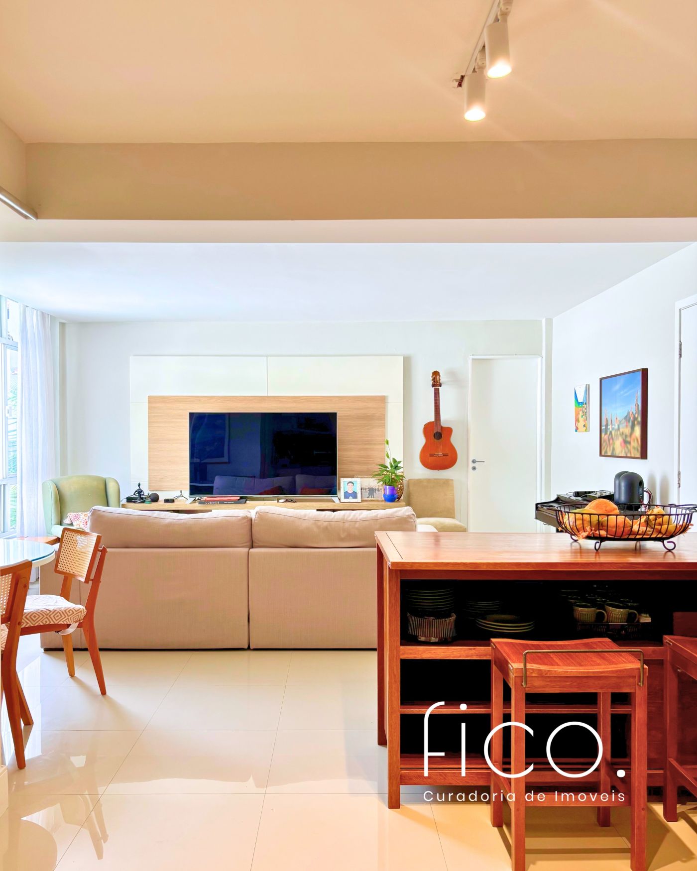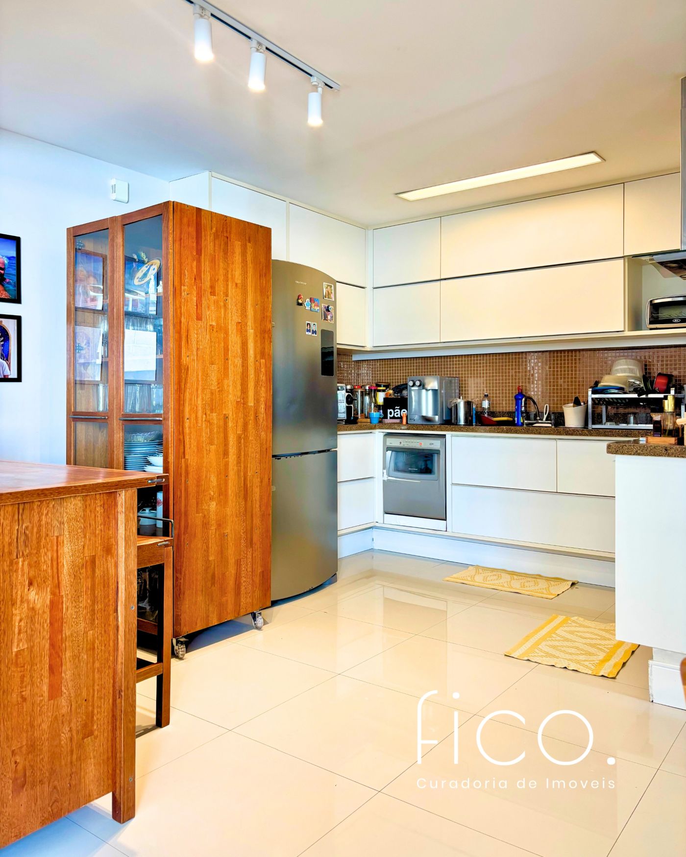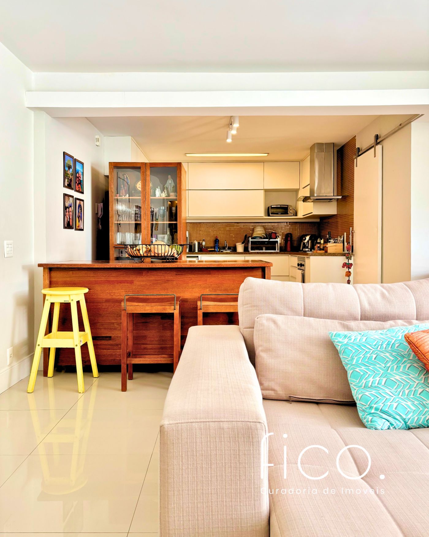 São três quartos, sendo duas suítes e mais um banheiro social. A cozinha é um charme! Foi integrada à sala, criando um ambiente amplo e moderno. Está toda equipada com cooktop, forno embutido, geladeira, coifa e máquina de lavar louça.  O apartamento conta ainda com área e banheiro de serviço.