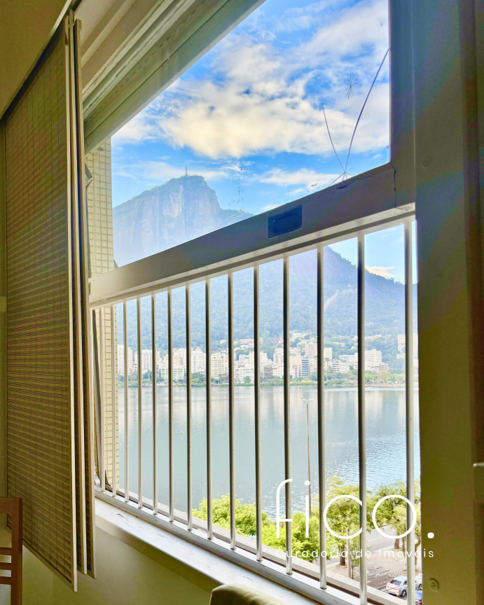 Precisando de modernização, mas com grande potencial, são três quartos, sendo uma suíte, com vista lateral linda para a Lagoa.