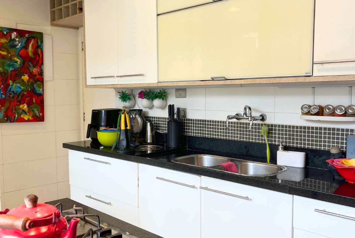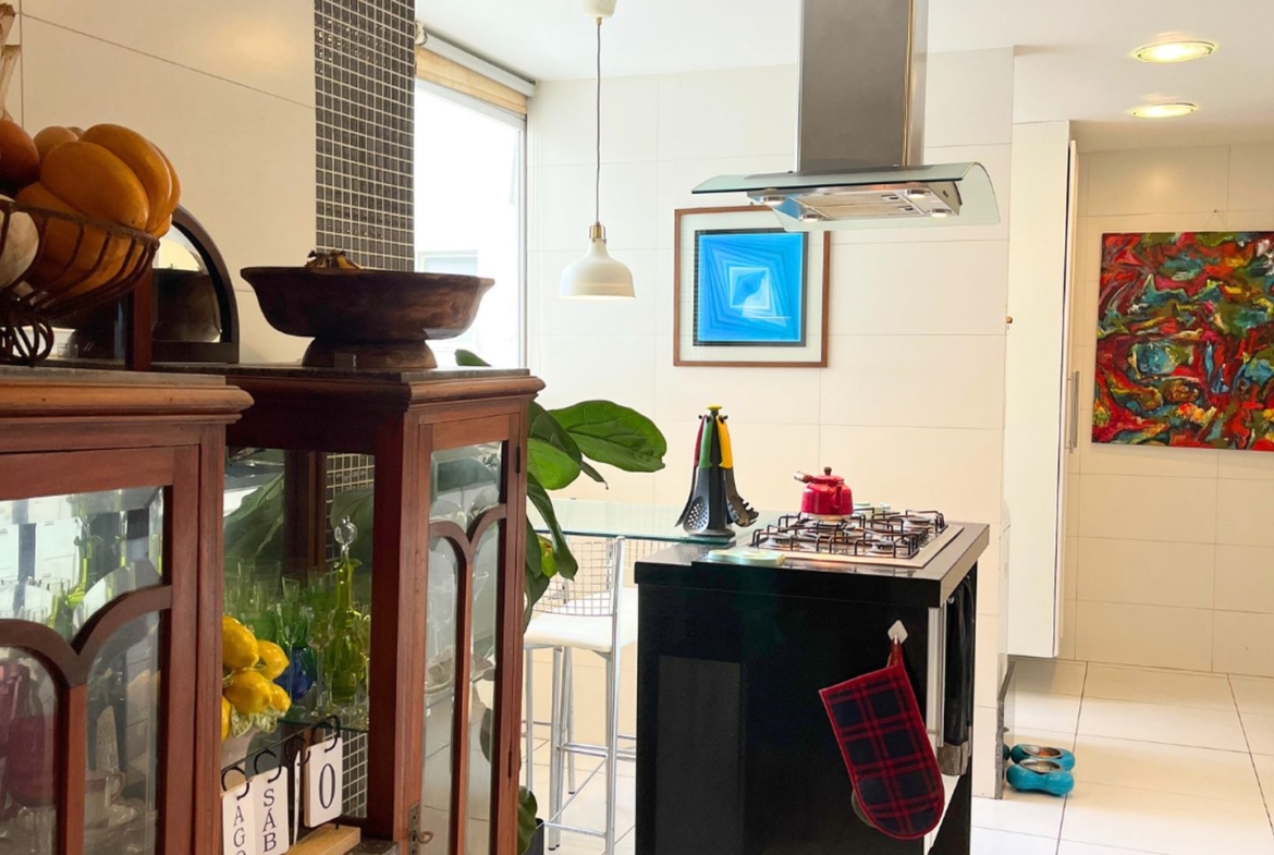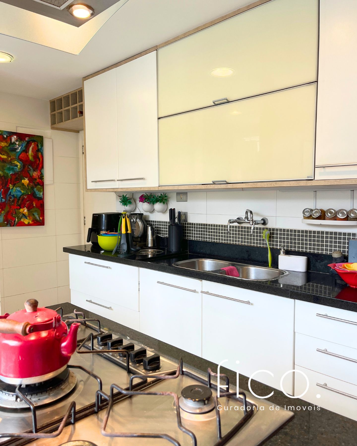 O imóvel possui ampla sala em dois ambientes com varanda, quatro quartos, sendo uma suíte com closet, escritório, copa cozinha gourmet com ilha central e lavanderia. Os três banheiros possuem ventilação natural.