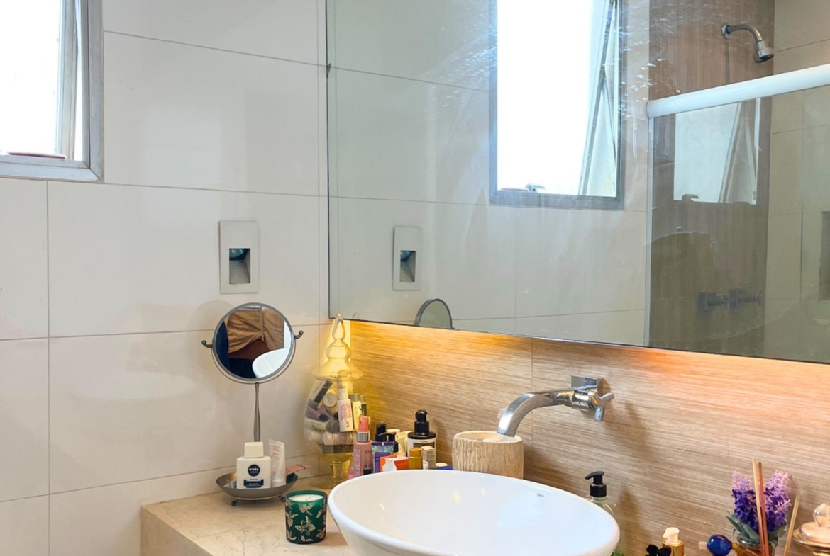 Conta ainda com duas vagas cobertas e livres na escritura, em condomínio com piscina, sauna, salão de festas e quadra poliesportiva, além de portaria 24h.