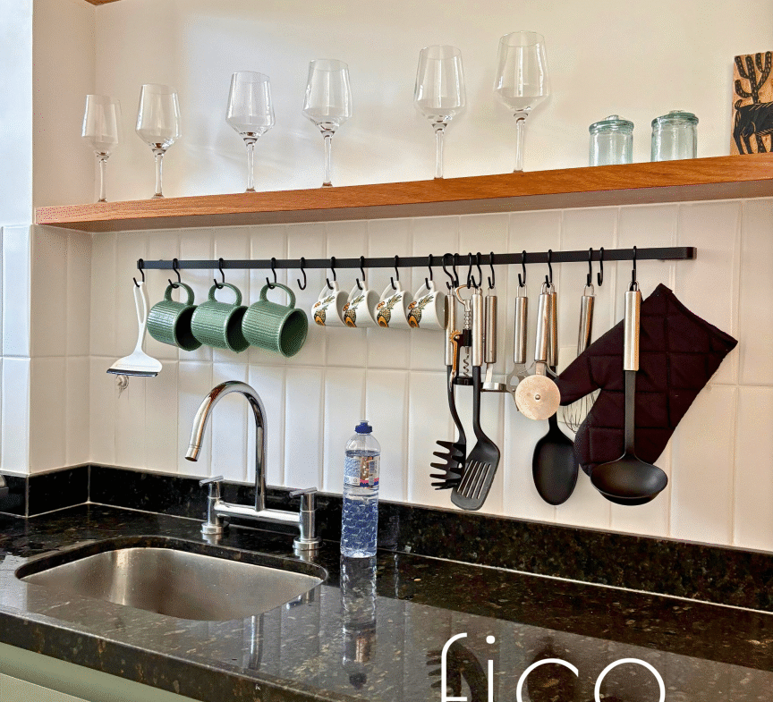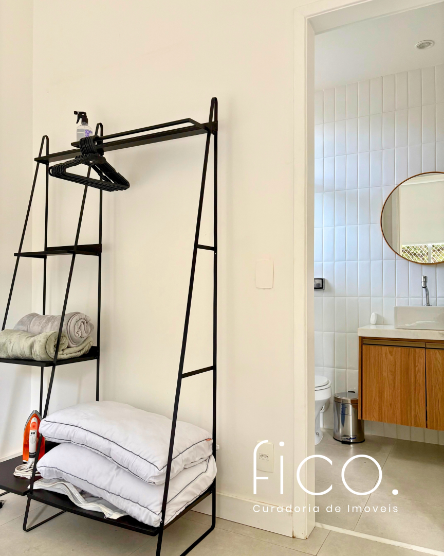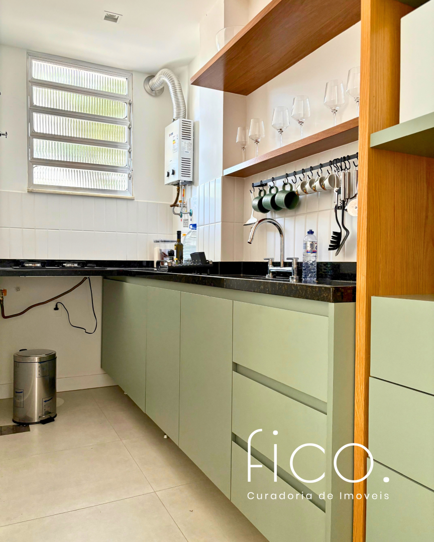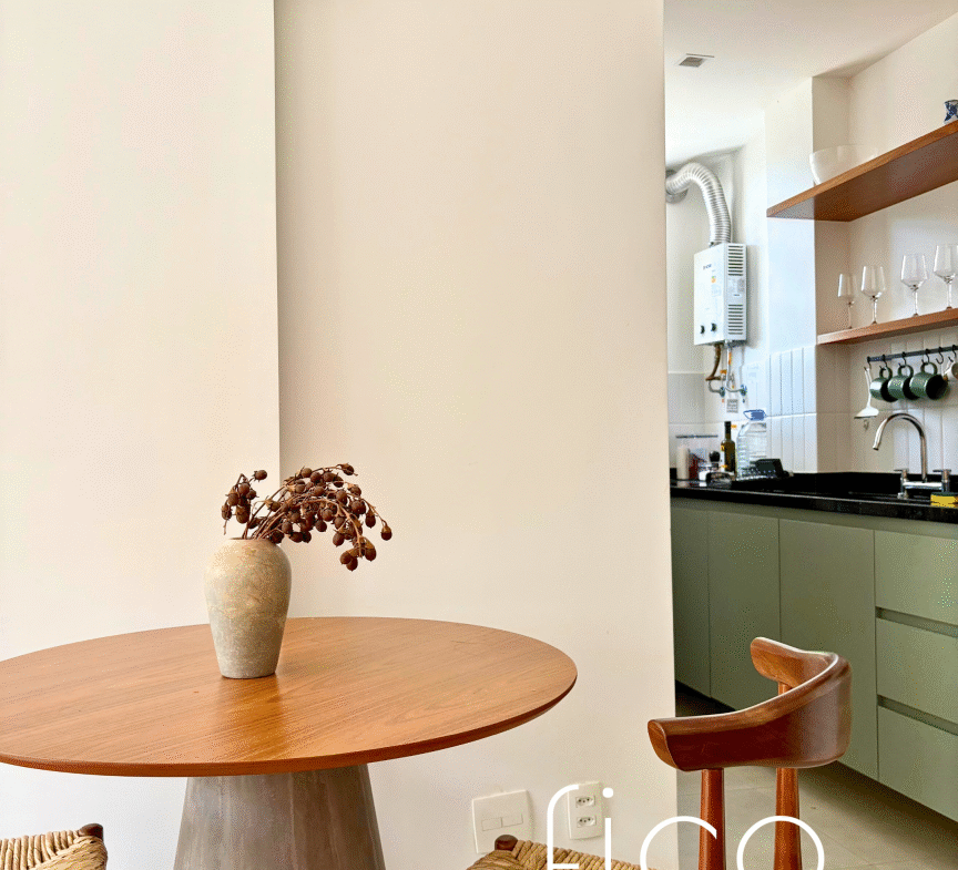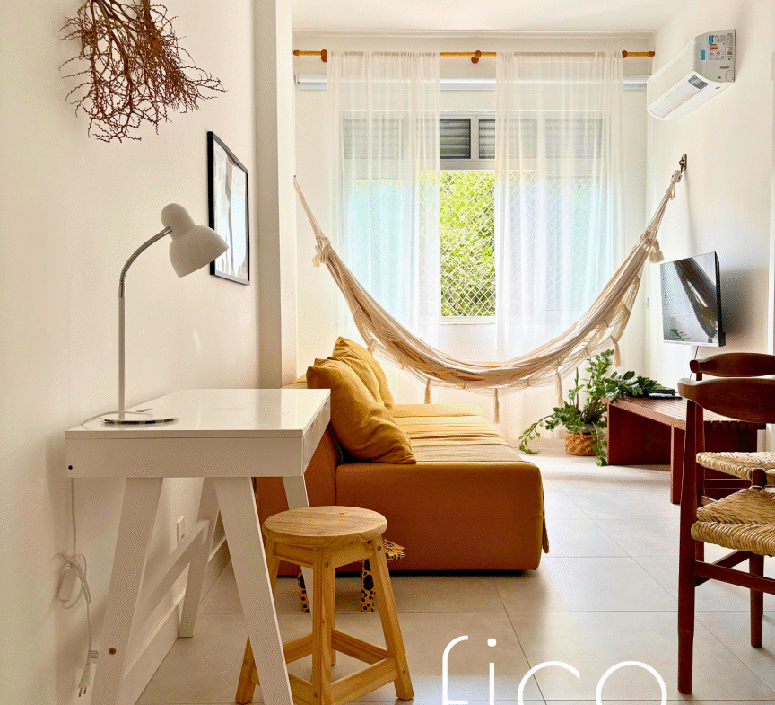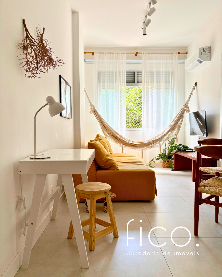 Possui marcenaria planejada na cozinha e banheiro, revestimentos e mobiliário de muito bom gosto, além de estar equipado com dois aparelhos de ar condicionado tipo split, geladeira, cooktop e microondas.