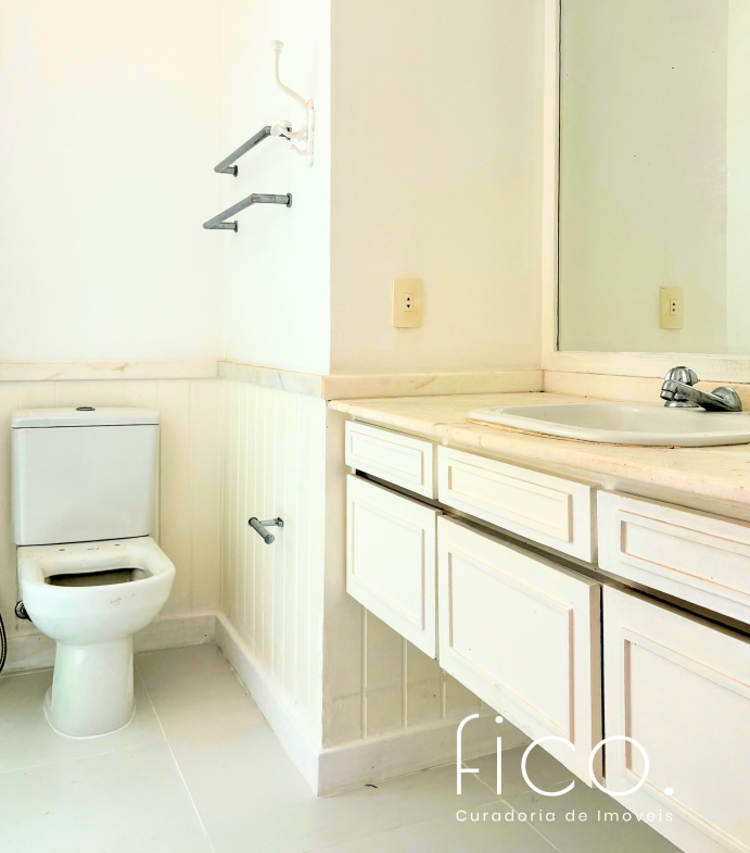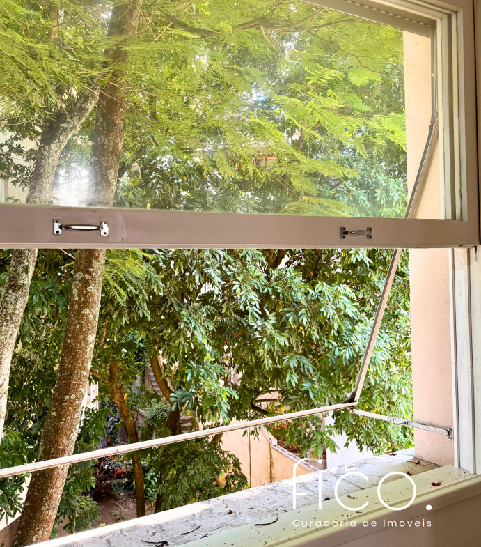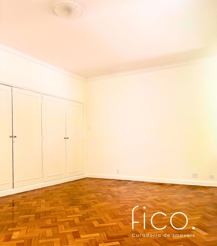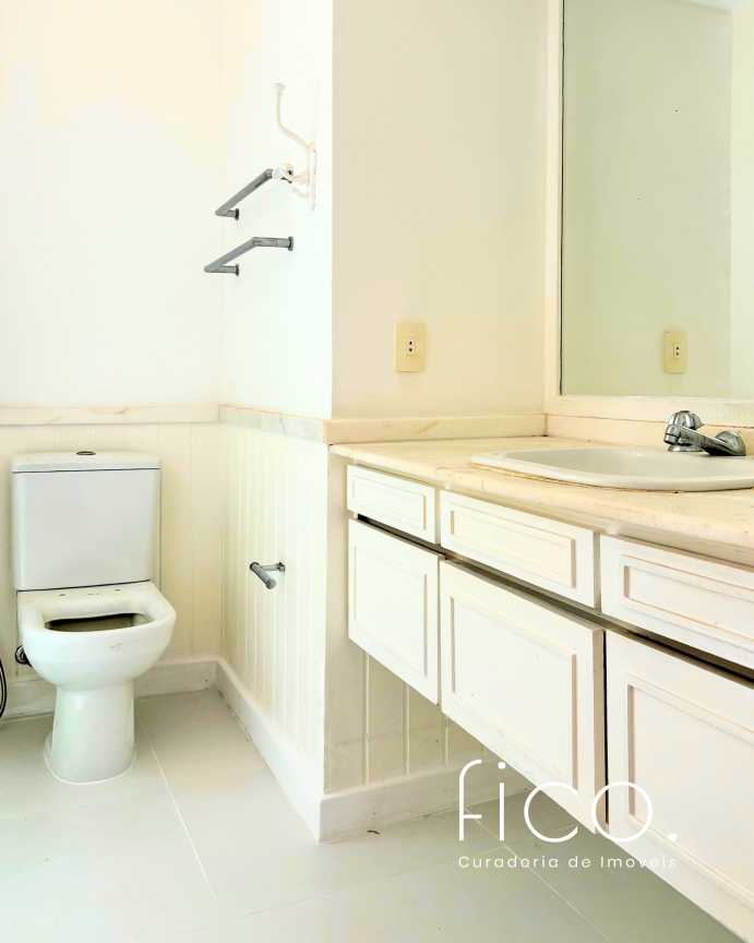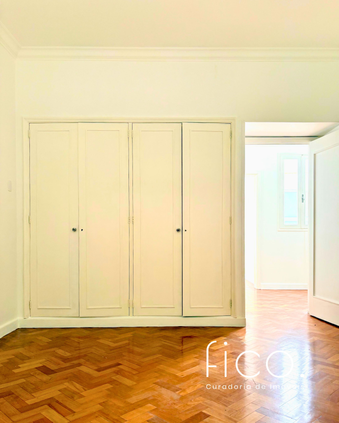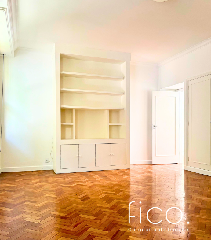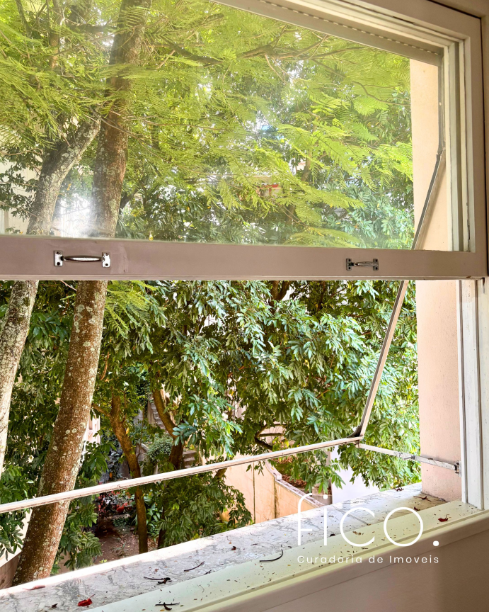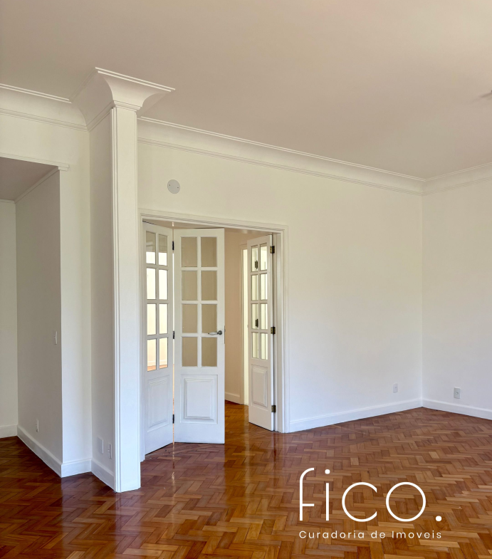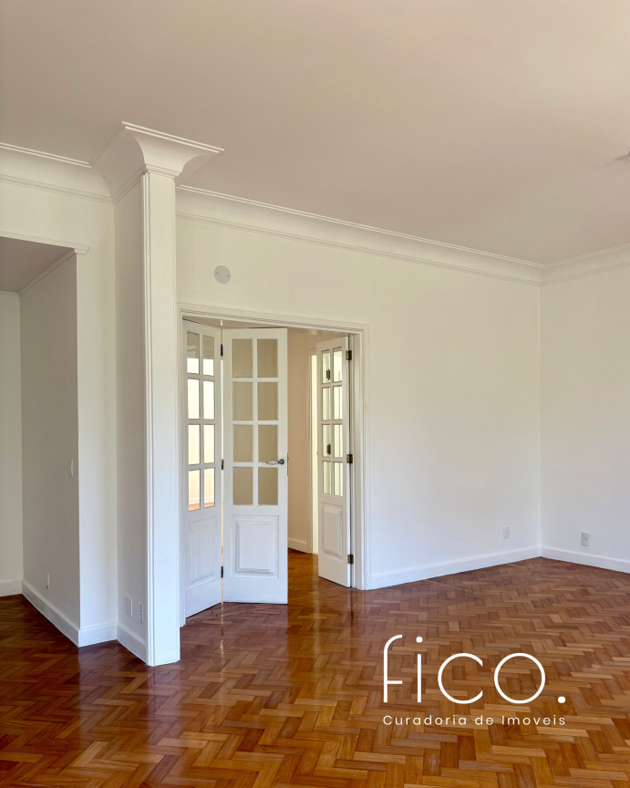 São 221m² com salão amplo e iluminado, vista para a copa das árvores e uma sala íntima no acesso aos quartos — uma ótima opção para escritório ou cantinho mais reservado para a família. Atualmente com dois quartos e dois banheiros sociais, o apartamento tem potencial para virar três quartos, com possibilidade de suíte.
