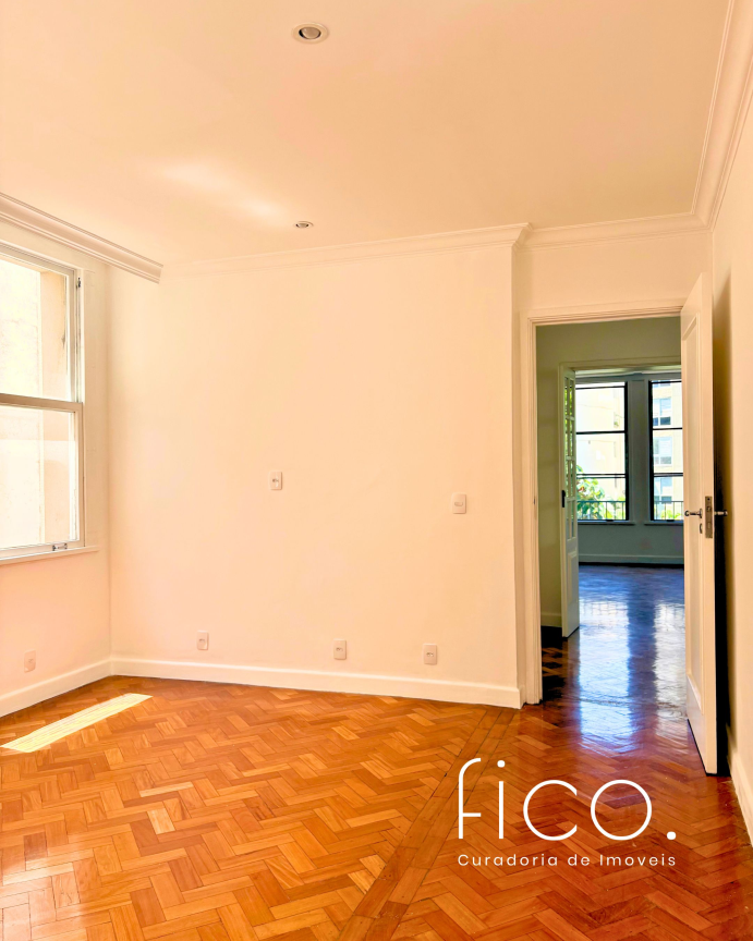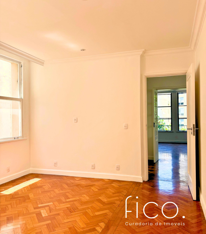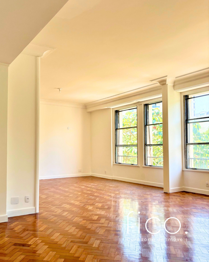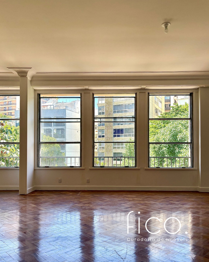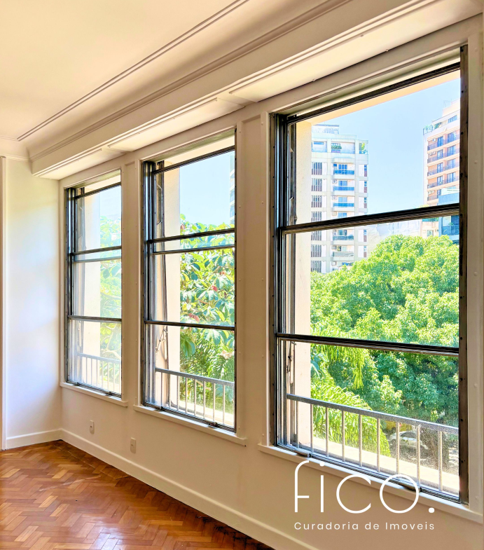 A poucos metros da praia, num dos edifícios mais icônicos do Leblon, este apartamento tem tudo que faz a arquitetura clássica carioca ser tão especial.