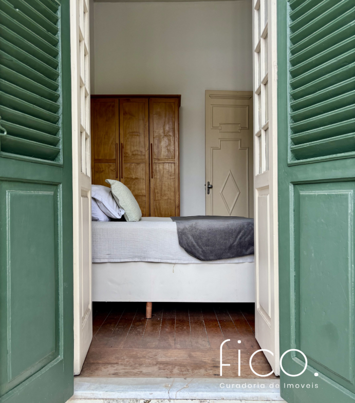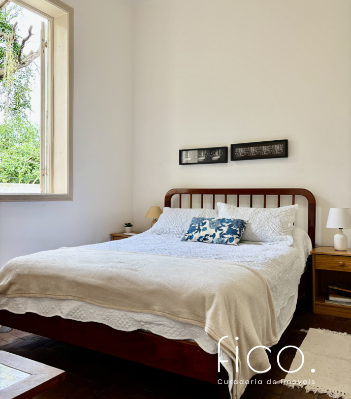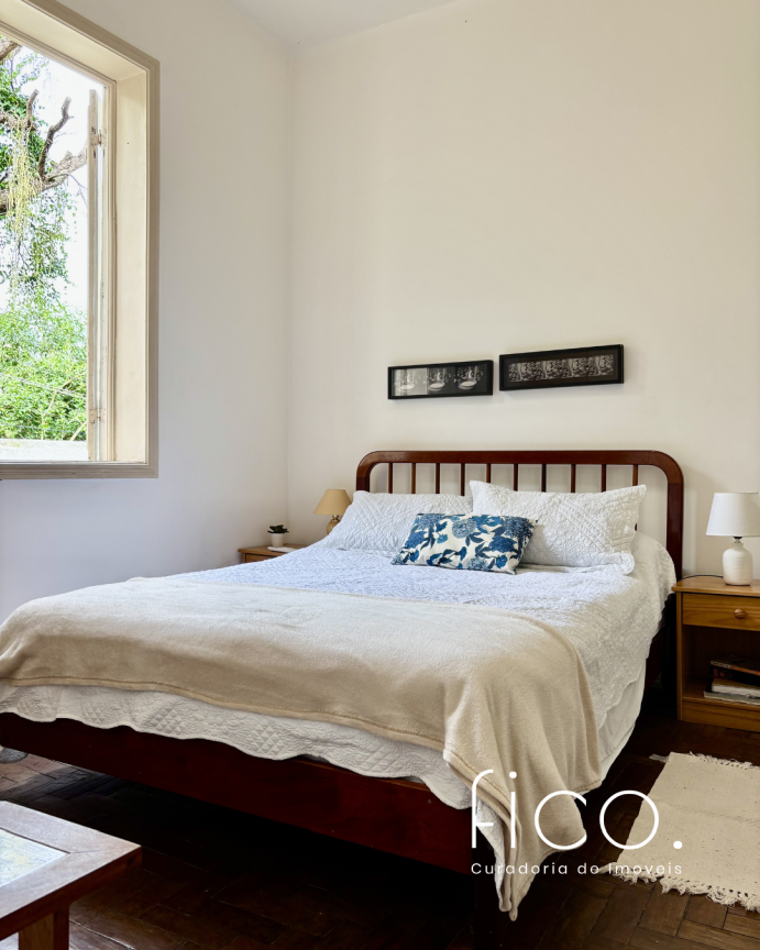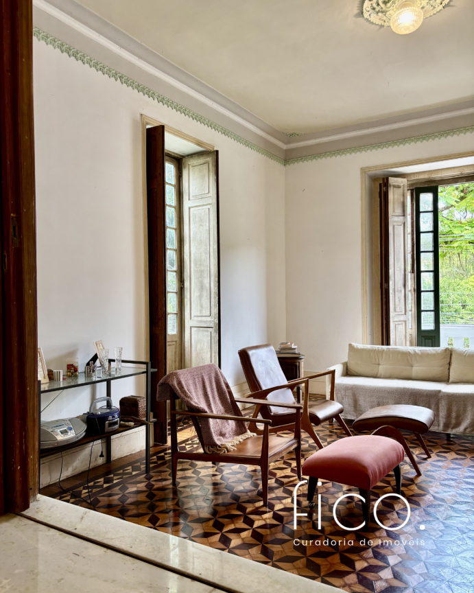 No segundo pavimento encontram-se cinco quartos, um banheiro completo e muito espaçoso — com potencial para ser transformado em dois — além de varandas que garantem ventilação cruzada e integração com as áreas externas. O solário preservado adiciona ainda mais charme aos espaços. Com excelente orientação solar (sol da manhã), a casa é iluminada, arejada e acolhedora, sendo também um espaço inspirador para ateliê, estúdio ou projeto autoral.