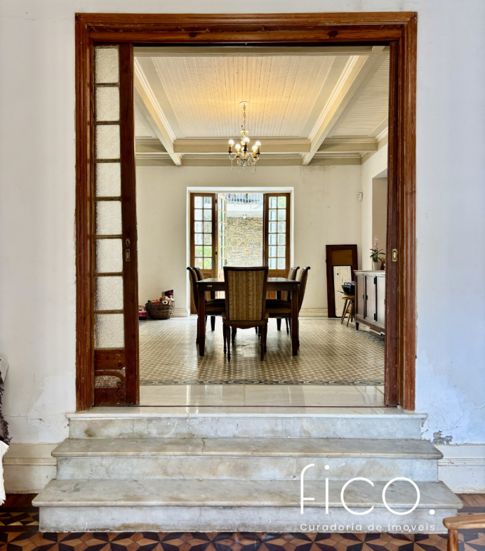 No pavimento de acesso está toda a área social, marcada pelos pisos originais em tábua corrida, taco de madeira e ladrilho hidráulico, elementos que preservam a essência da construção. A planta contempla ante sala, sala de estar e uma linda sala de jantar, ambientes amplos e cheios de possibilidades, além de varanda com vista frontal e lateral e um agradável terraço com churrasqueira argentina, ideal para receber amigos e aproveitar o clima boêmio do bairro. A área de serviço é completa, com copa, cozinha, lavanderia e banheiro.